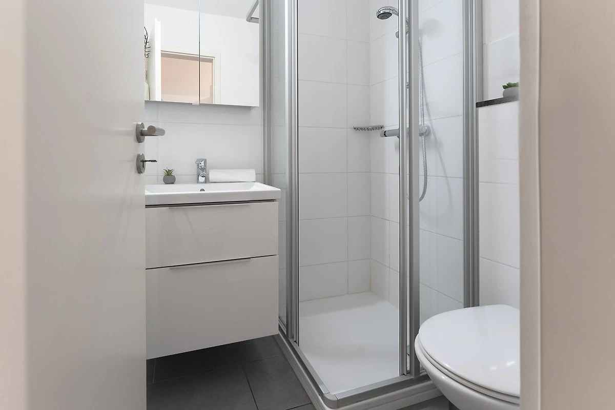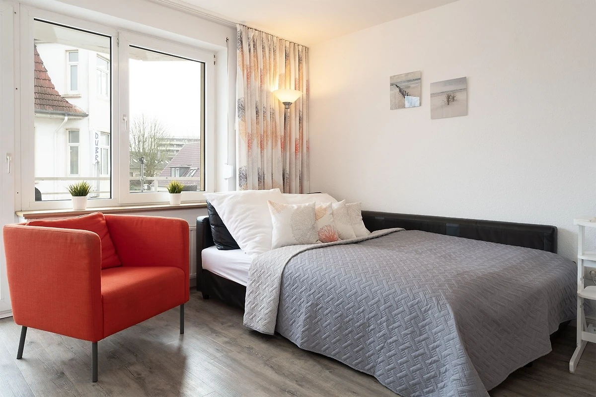 Ihr Feriendomizil bietet Ihnen einen hellen, lichtdurchfluteten Wohnraum mit Schlafcouch (ca.140x190 cm) und einer integrierten, grosszügigen Küchenzeile, die allen Komfort für einen Wohlfühlurlaub als Paar oder kleine Familie bietet. Mit Annehmlichkeiten wie einem 4-Platten-Cerankochfeld, Backofen und Mikrowelle lassen sich hier im Handumdrehen leckere Ferienrezepte kreieren. Geniessen Sie doch mal das Abendessen oder einen stilvollen Sundowner draussen "al fresco" - vom Wohnzimmer aus gelangen Sie direkt auf den möblierten Balkon, der an lauen Sommerabenden zum Verweilen einlädt. Das separate Schlafzimmer ist hochwertig mit bequemen Doppelbett (2x80x200 cm) ausgestattet. Das hübsche Wohlfühlbad überzeugt mit Ausstattungsmerkmalen wie Dusche, WC, Föhn und praktischem beheizbarem Handtuchhalter. Aussenjalousien sorgen in Ihrem Logis für Sonnenschutz und angenehme Verdunklung. Rundherum liebevoll eingerichtet, überzeugt diese Feriendomizil mit Strandflair und Urlaubsatmosphäre.