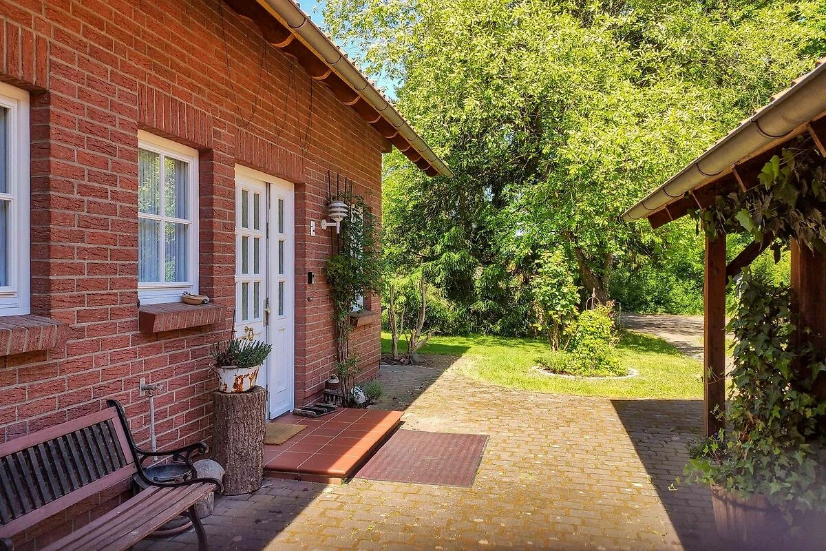Der Garten ist liebevoll angelegt und ruhig, mit Sitzmöglichkeiten für entspannte Stunden im Freien. Ein Carport für zwei Fahrzeuge, die Lage am Waldrand und die Nähe zum Fleesensee machen den Aufenthalt angenehm unkompliziert.
