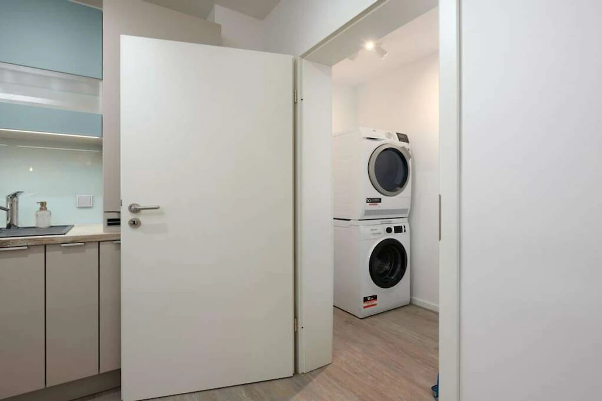Parterre: (Wohnzimmer(, , , Bibliothek, TV), Esszimmer(, Esstisch), Küche(, , Kochnische, Esstisch, Kochplatte, Wasserkocher, Toaster, Kaffeemaschine, Mikrowelle, Spülmaschine, Kühlschrank, Tiefkühlschrank), Schlafzimmer(, , , Doppelbett), Schlafzimmer(, Doppelbett, TV), Badezimmer(, , Toilette, Dusche, Waschbecken, Föhn), Abstellraum(, Trockner, Waschmaschine, Bügelbrett, Bügeleisen, Trockenschrank))