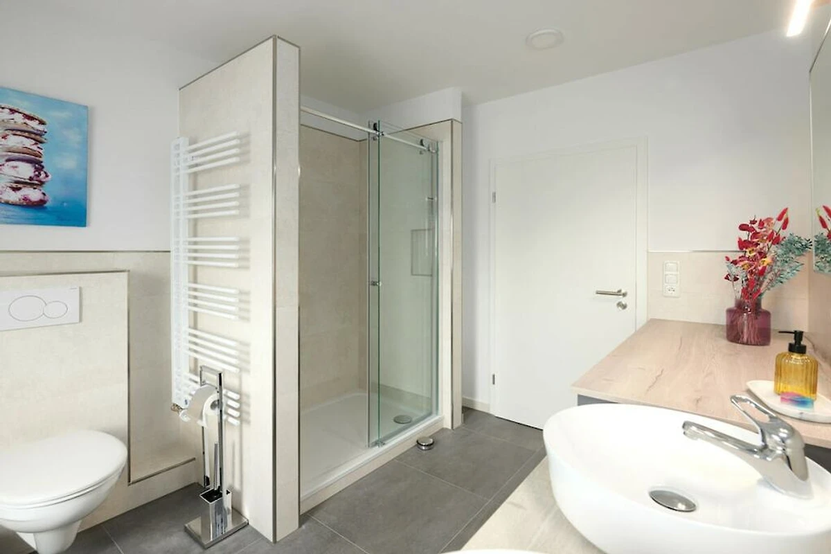Die Maisonette-Wohnung verfügt über freies WLAN, zwei Smart-TV, eine Bluetooth-Lautsprecherbox, Gesellschaftsspiele und Bücher.