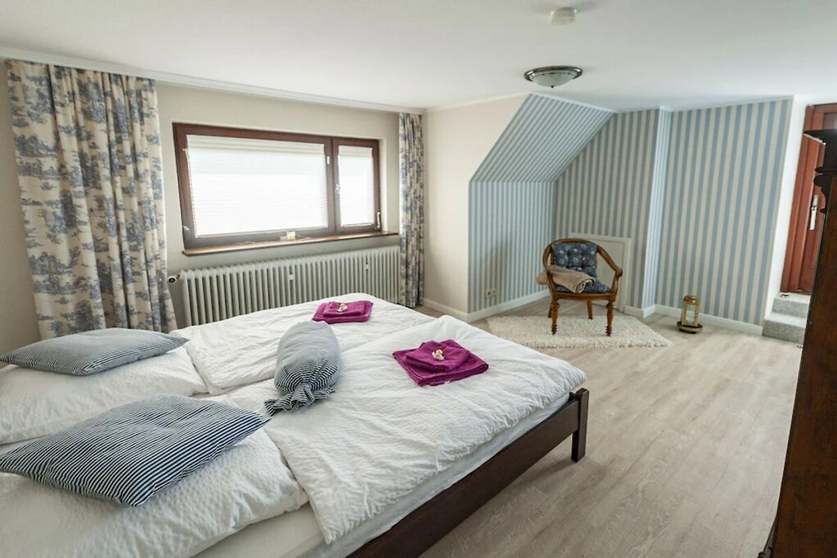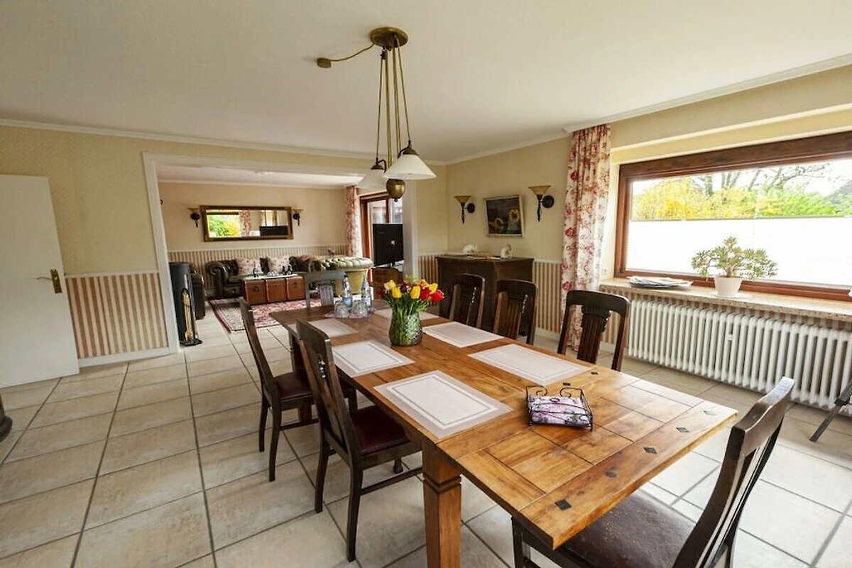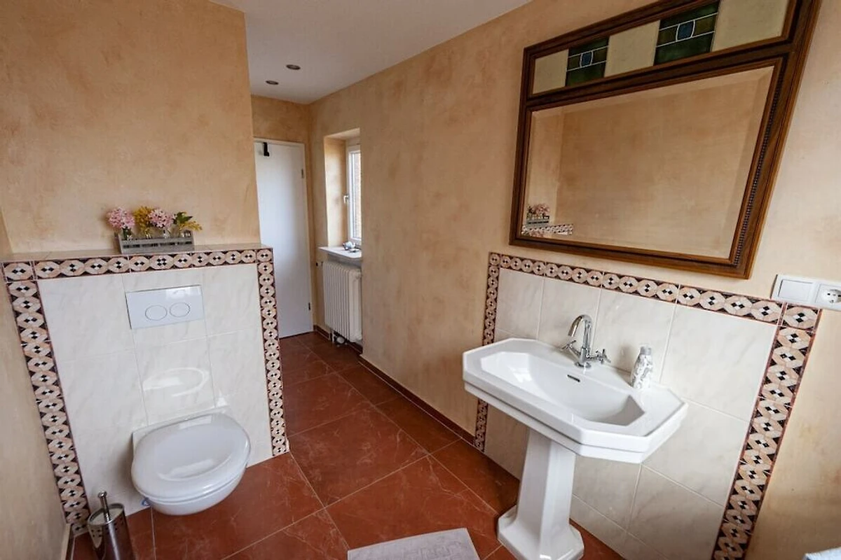 4 Schlafzimmer, 2 Bäder, eins davon mit Badewanne, gemütliches Wohn- und Esszimmer mit Ofen. Großer Garten mit Terrasse, Balkon. Gut geeignet auch für kleine Gruppen, Seminare und ähnliches.
