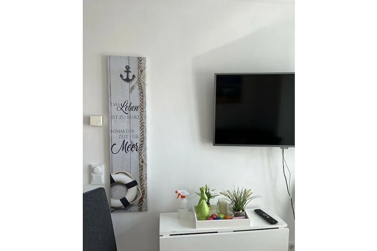 Die Koje ist eine kleine Mini-Ferienwohnung. Sie verfügt über ein Lederschlafsofa, welches sich bequem zum Doppelbett heraus drehen lässt, eine Küchenzeile mit Geschirrspüler, eine sonnige Terrasse mit Strandkorb und ein kleines Duschbad. Der Klapptisch und das Bett können nicht zur gleichen Zeit aufgebaut werden.