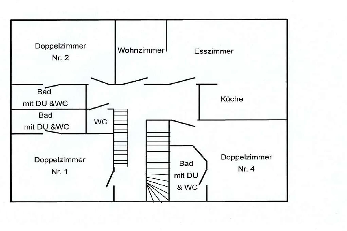 In der 1. Etage: (Küche(, , Kochnische, Herd, Kochplatte, Wasserkocher, Toaster, Kaffeemaschine, Backofen, Mikrowelle, Spülmaschine, Kühlschrank, Tiefkühlschrank), Wohn/Esszimmer(, , , Bibliothek, TV, Esstisch, Radio, CD-Spieler, Spielzeug, Fliegenfenster), Schlafzimmer(, , Schlafcouch 1 Pers., Doppelbett, TV, Radio, Fliegenfenster), Schlafzimmer(, , Schlafcouch 1 Pers., Doppelbett, TV, Radio, Fliegenfenster), Schlafzimmer(, , Doppelbett, TV, Radio, Fliegenfenster), Badezimmer(, Toilette, Dusche, Dusche, Waschbecken, Föhn, Fliegenfenster), Badezimmer(, Toilette, Dusche, Dusche, Waschbecken, Föhn, Fliegenfenster), Badezimmer(, Toilette, Dusche, Dusche, Waschbecken, Föhn, Fliegenfenster), guest toilet(, Toilette, Waschbecken))