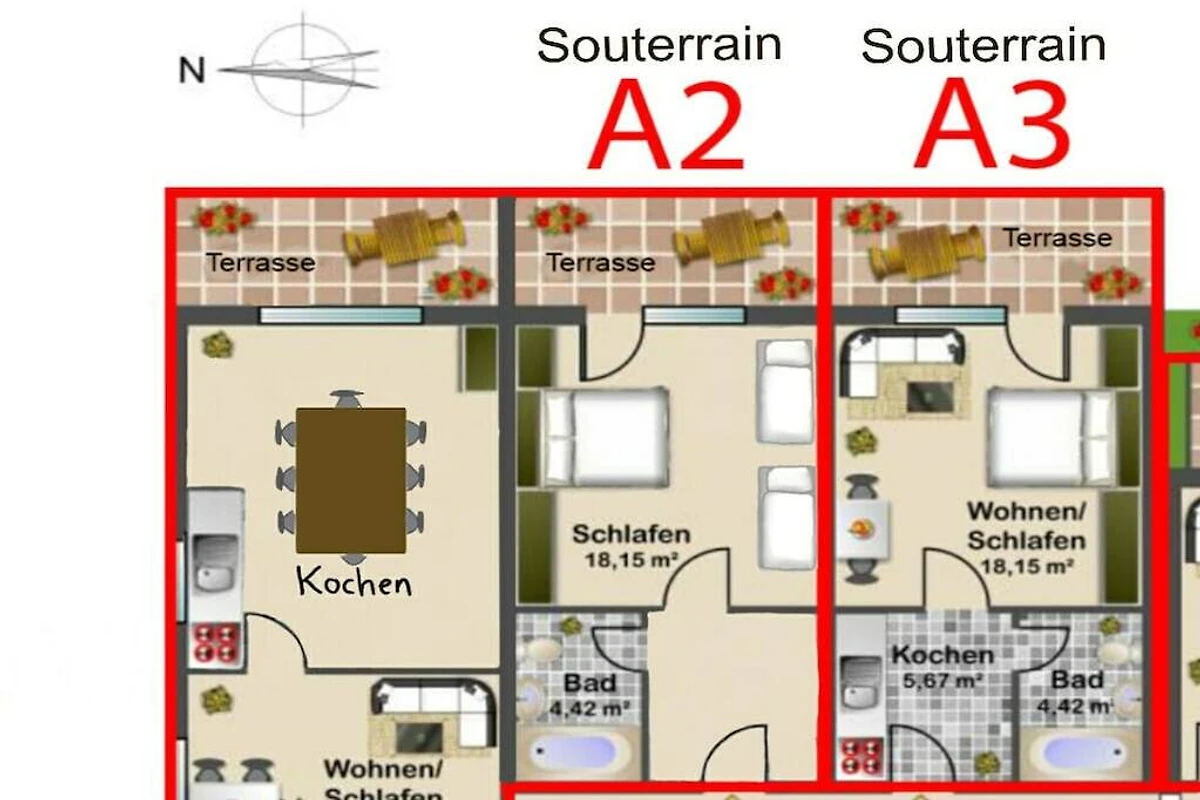 In unserem Apartment A3 befindet sich ein Wohn-, Ess- Schlafbereich welcher komplett neu und modern eingerichtet wurde.