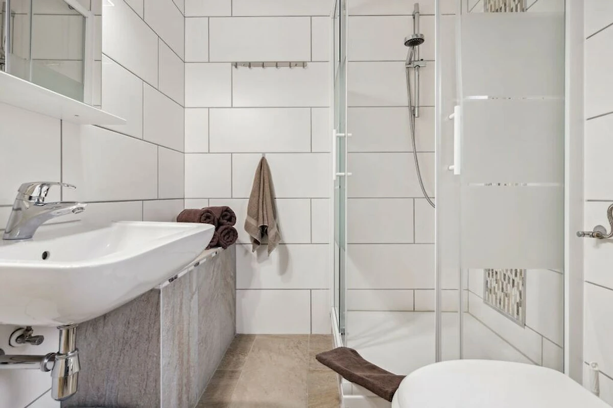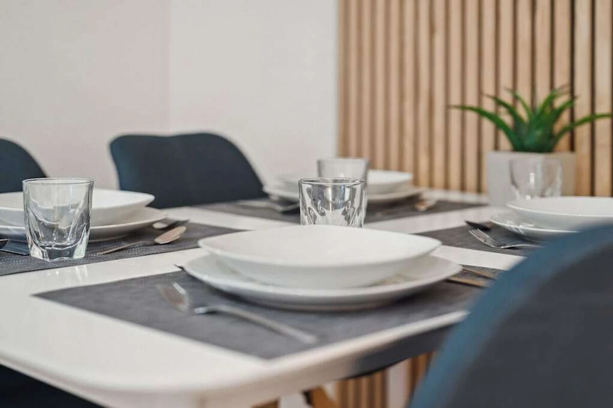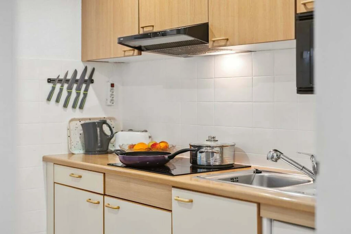 - voll ausgestattete Küche mit Wasserkocher, Toaster, Spülmaschine und Kaffeemaschine.