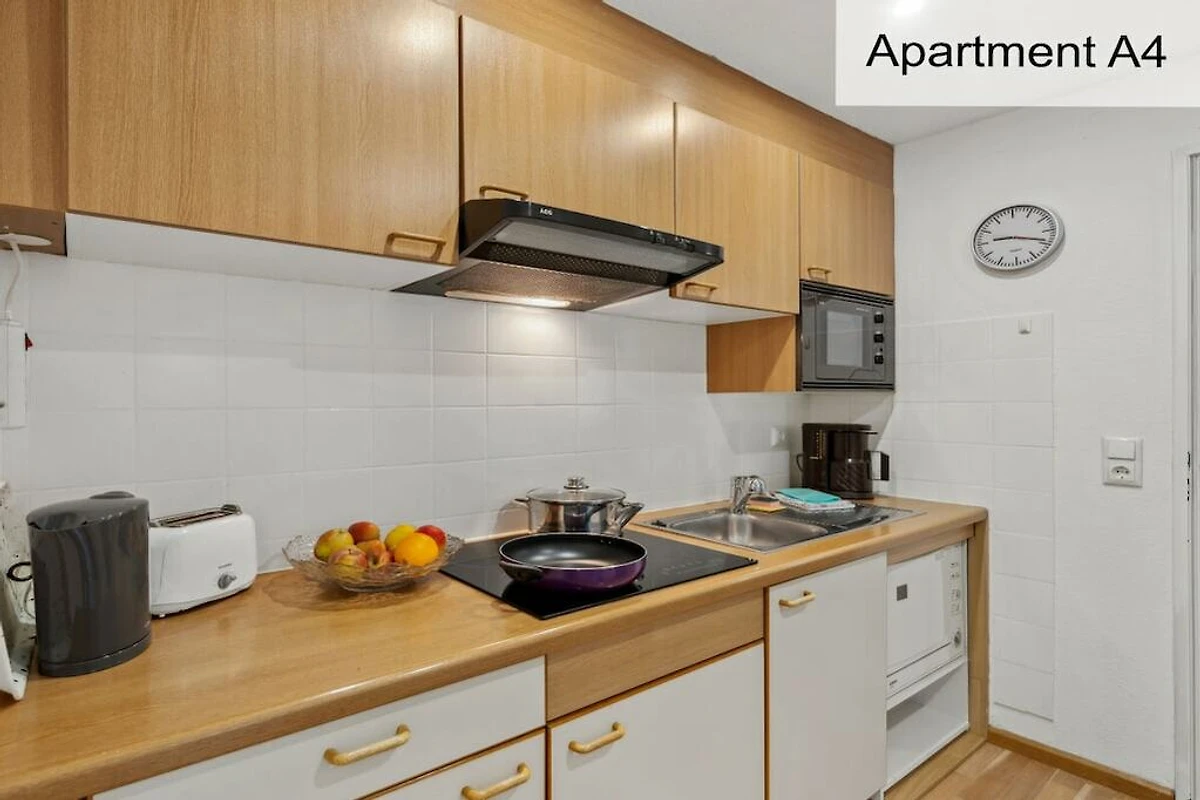 In unserem Apartment A4 befindet sich ein Wohn-/ Esszimmer und ein Schlafzimmer welcher komplett neu und modern eingerichtet wurden und bietet Platz für bis zu 6 Personen.