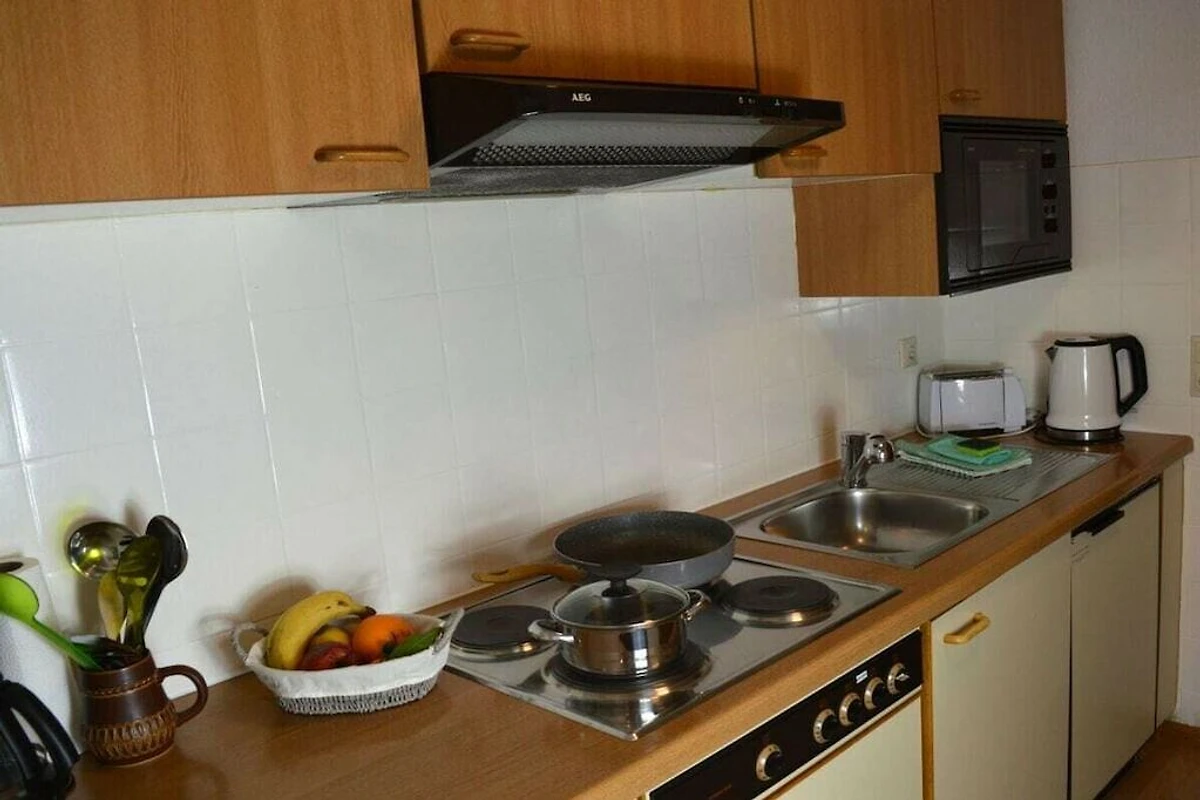 , , , , Küche(Kochherd, Spülmaschine, Kühlschrank), Wohn-/Schlafzimmer(, , , TV), Schlafzimmer(, , Einzelbett, Doppelbett), Badezimmer(, Dusche, Waschbecken), Internet, Trockner, Waschmaschine, Balkon(Balkon), Balkon(Balkon), Parkplatz, Bügelbrett, Bügeleisen, Trockenschrank