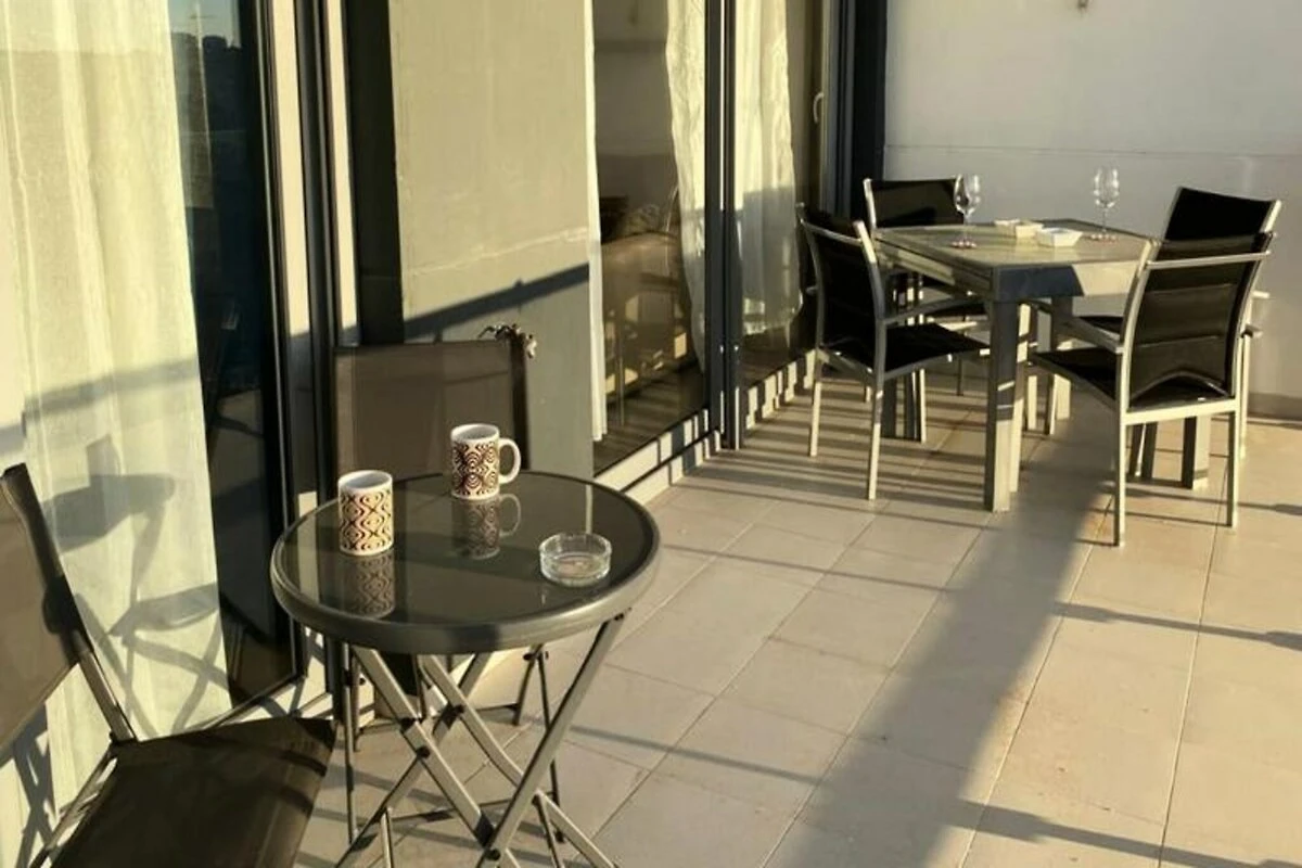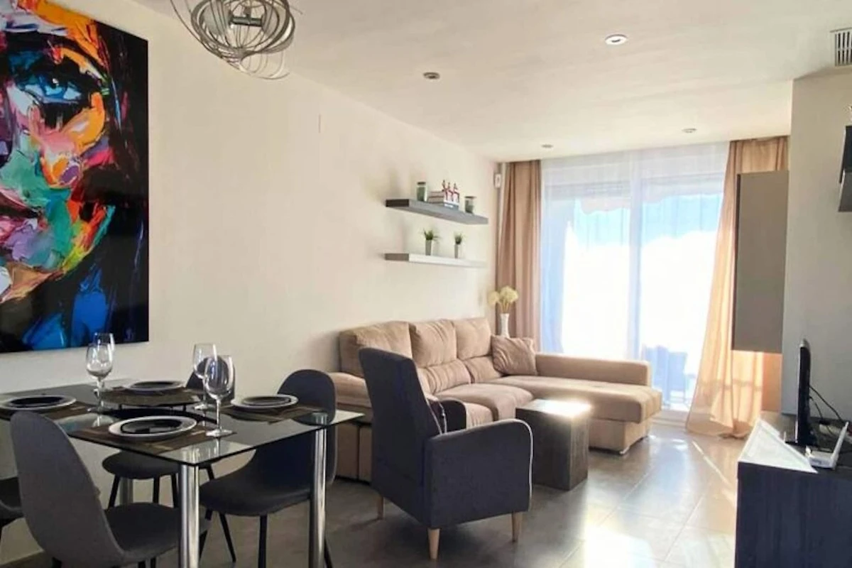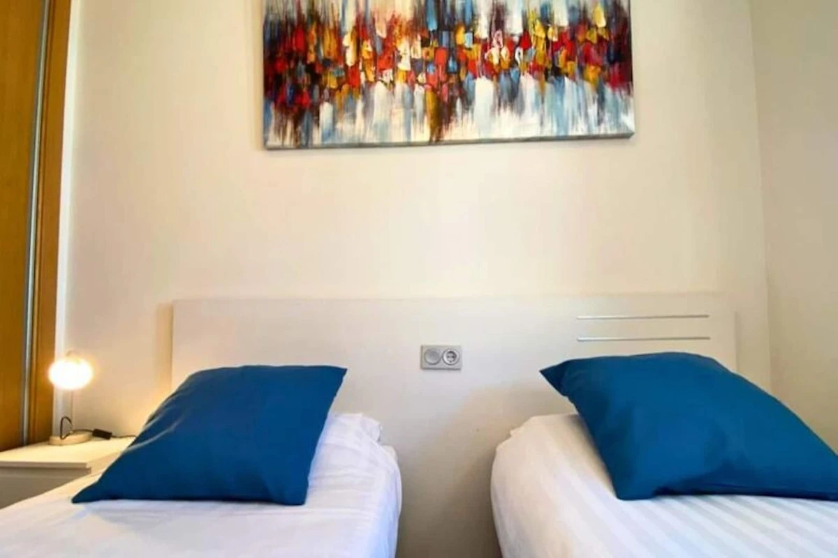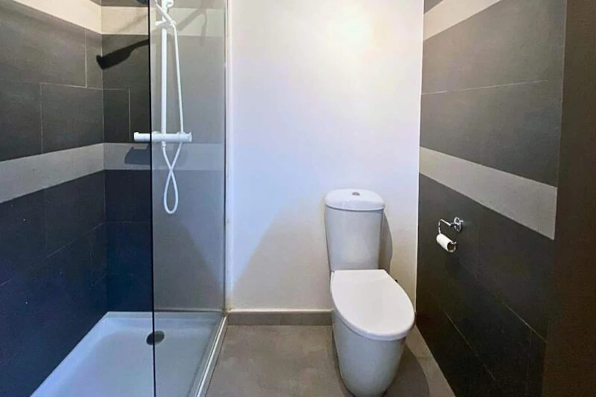 Dieses moderne Apartment bietet einen hellen und geräumigen Wohnraum, ideal für Familien oder Freunde, mit zwei Schlafzimmern und einem privaten Solarium. Ein Schlafzimmer verfügt über ein Doppelbett, das andere über zwei Einzelbetten. Haustiere sind nicht erlaubt. Zur Wohnung gehört auch ein Badezimmer mit ebenerdiger Dusche. Bettwäsche und Handtücher werden für zusätzlichen Komfort bereitgestellt. Die Wohnung befindet sich im 1. Stock, ist über eine Außentreppe erreichbar und verfügt über einen Parkplatz direkt vor der Residenz.