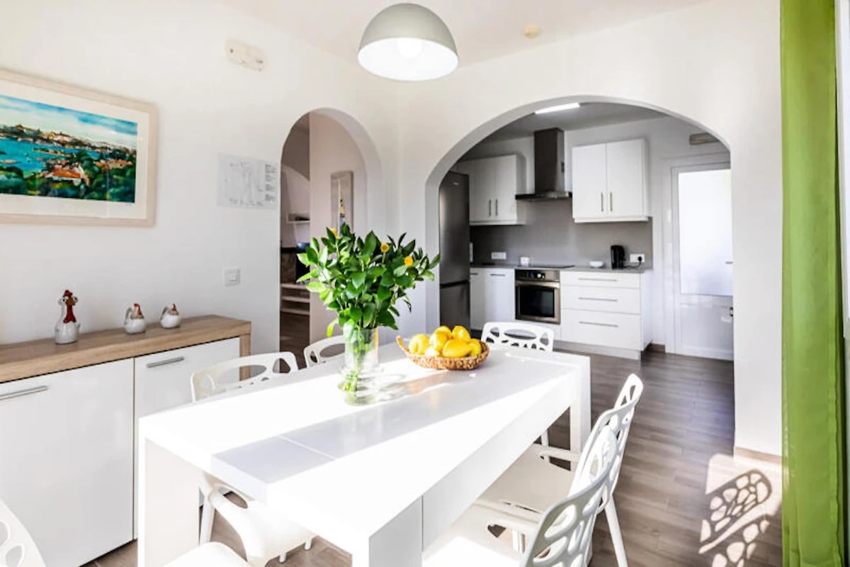 Die Villa liegt ideal in einer ruhigen Gegend in der Nähe des Meeres und ist nur 200 Meter vom Supermarkt, der Bushaltestelle und einer Vielzahl von Restaurants entfernt. Der wunderschöne Strand Playa de Son Bou ist nur 500 Meter entfernt und eignet sich perfekt für Strandliebhaber. Die Villa liegt außerdem in der Nähe der Stadt Alaior (5 km) und nur 15 km vom Flughafen Mahón entfernt, was sie zu einem idealen Ausgangspunkt für die Erkundung der Naturschönheiten und Attraktionen Menorcas macht.