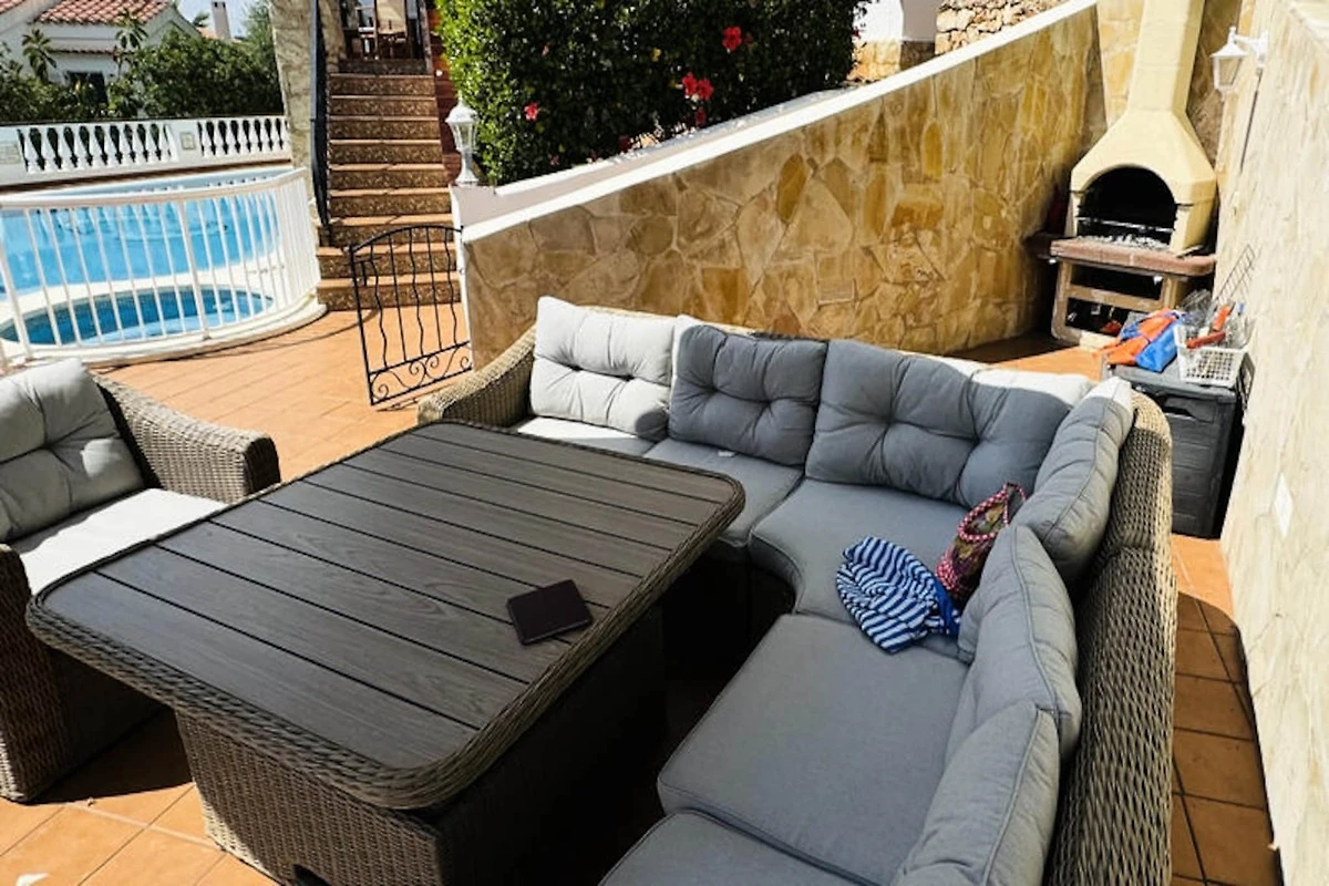 Diese geräumige Villa bietet vier wunderschön eingerichtete Schlafzimmer und bietet Platz für bis zu acht Personen. Mit 200 m² Wohnfläche bietet die Immobilie viel Platz zum Entspannen für Familien oder Gruppen. Es ist durchgehend mit einer Klimaanlage ausgestattet, die für Komfort während Ihres Aufenthalts sorgt. Zu den weiteren Annehmlichkeiten gehören WLAN, zwei Fernseher mit Satellitenkanälen (englisch), ein DVD-Player, vier Ventilatoren und ein Kamin. Die Villa ist haustierfrei und sorgt so für eine ruhige und entspannte Atmosphäre für alle Gäste.