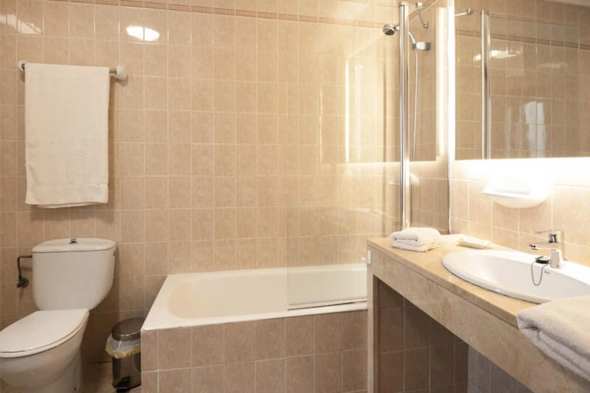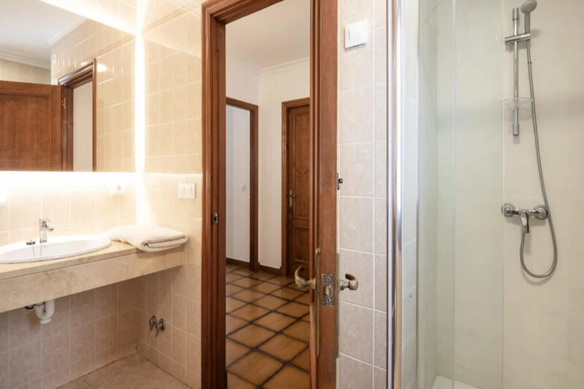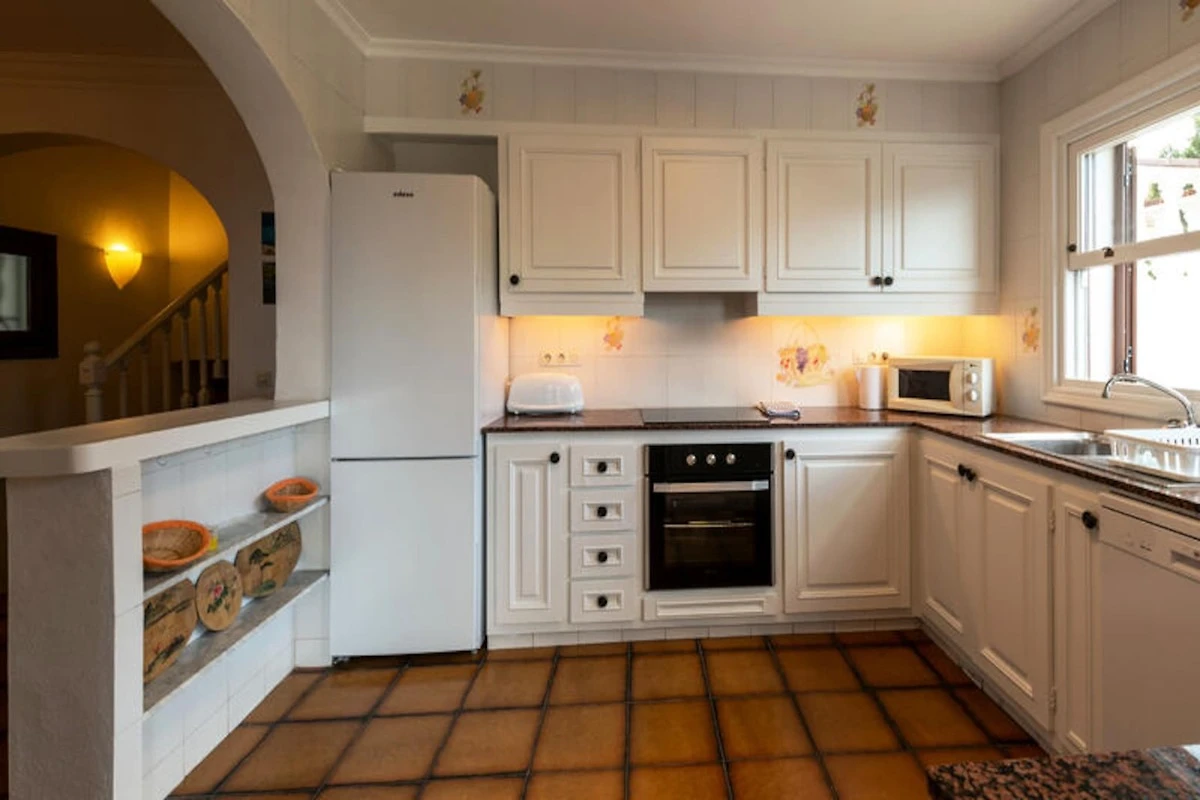 Das Apartment verfügt über eine voll ausgestattete Küche mit Kühlschrank, Mikrowelle, Backofen und Geschirrspüler. Es verfügt außerdem über ein modernes Badezimmer mit Dusche und ein separates WC für zusätzlichen Komfort. Darüber hinaus bietet eine private Terrasse einen entspannenden Außenbereich, ideal zum Genießen der Umgebung.