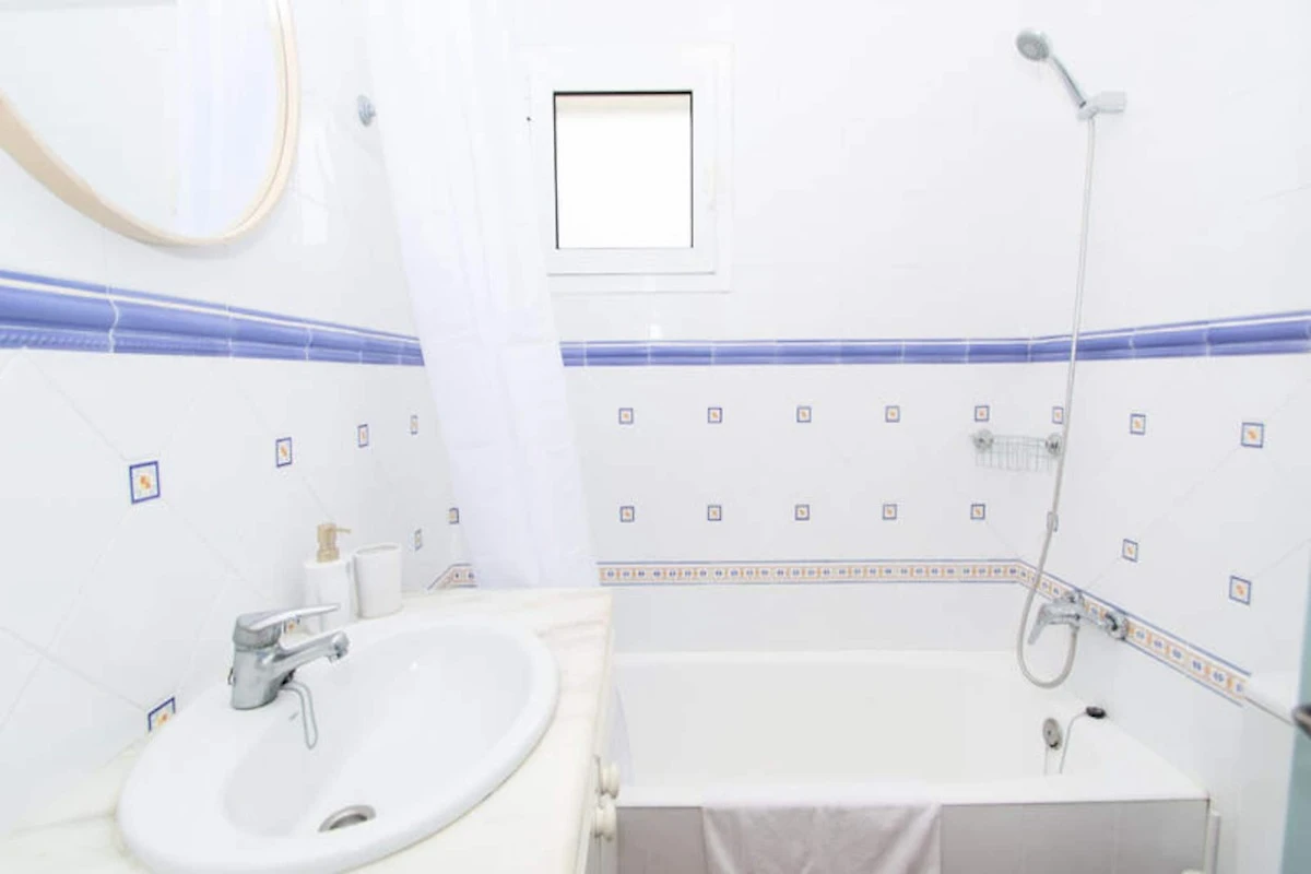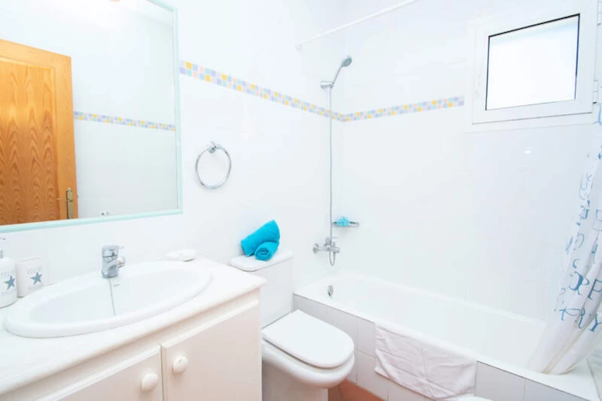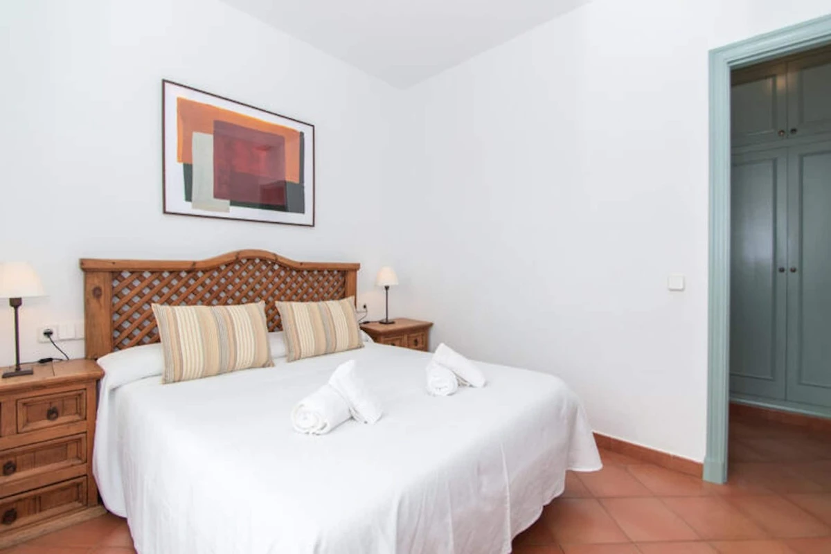 Diese charmante Doppelhausvilla bietet einen geräumigen und privaten Rückzugsort für Familien oder Gruppen und verfügt über drei Doppelzimmer und zwei Badezimmer. Die Hauptschlafzimmersuite verfügt über ein Doppelbett und direkten Zugang zur Terrasse, während die anderen beiden Zimmer jeweils über zwei Einzelbetten verfügen. Alle Schlafzimmer sind mit Einbauschränken für ausreichend Stauraum ausgestattet. Die Villa ist nicht haustierfreundlich und den Gästen stehen Annehmlichkeiten wie eine zentrale Klimaanlage, WLAN, ein Safe und ein Radio-CD-Player mit iPod-Eingang zur Verfügung. Der private Parkplatz und ein großer Swimmingpool mit Sonnenliegen runden das Erlebnis ab.