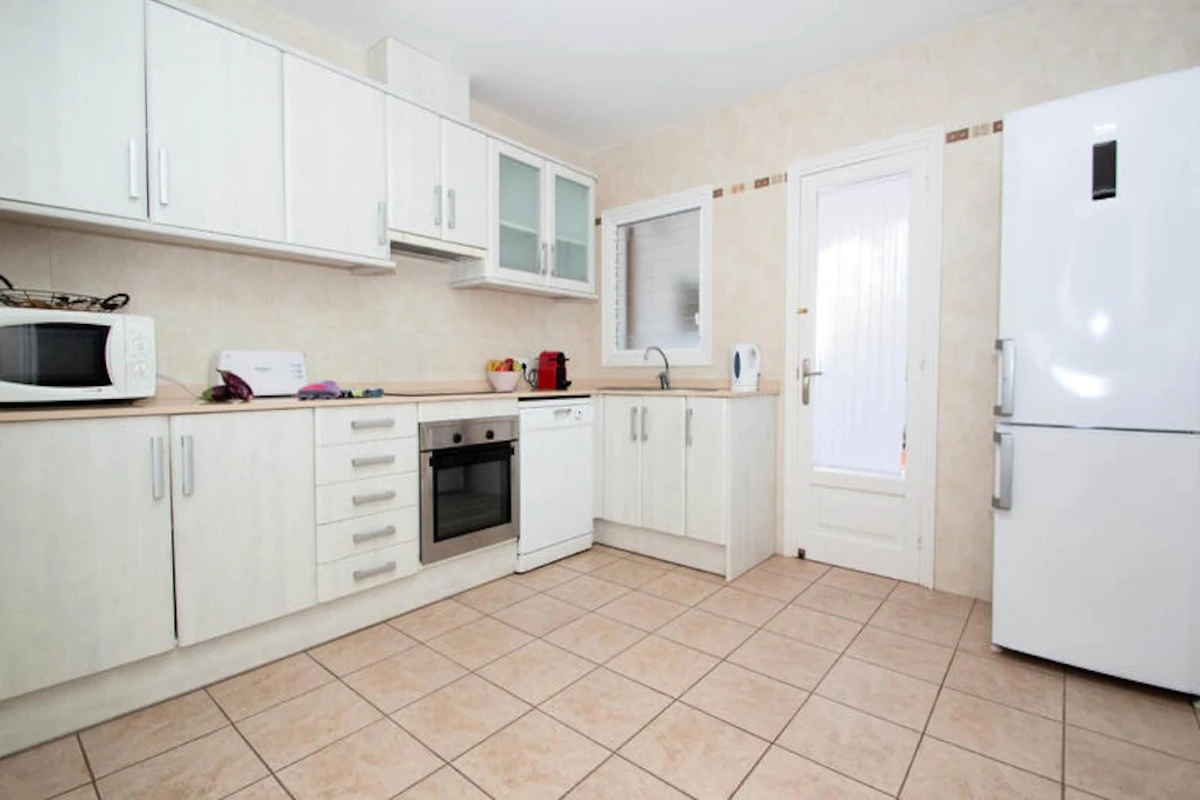 Die gut ausgestattete K�che der Villa verf�gt �ber einen K�hlschrank, einen Backofen, einen Geschirrsp�ler, eine Kaffeemaschine und eine Mikrowelle. Der Wohn- und Essbereich ist gerהumig und bietet direkten Zugang zur Terrasse und zum Pool. Eine zweite kleine K�che im Obergeschoss sorgt mit einem K�hlschrank, einem Herd und einem Backofen f�r zusהtzlichen Komfort f�r die Gהste. Das Anwesen verf�gt au�erdem �ber mehrere Badezimmer, darunter eines mit Dusche, und Au�enbereiche, die sich ideal zum Entspannen eignen.