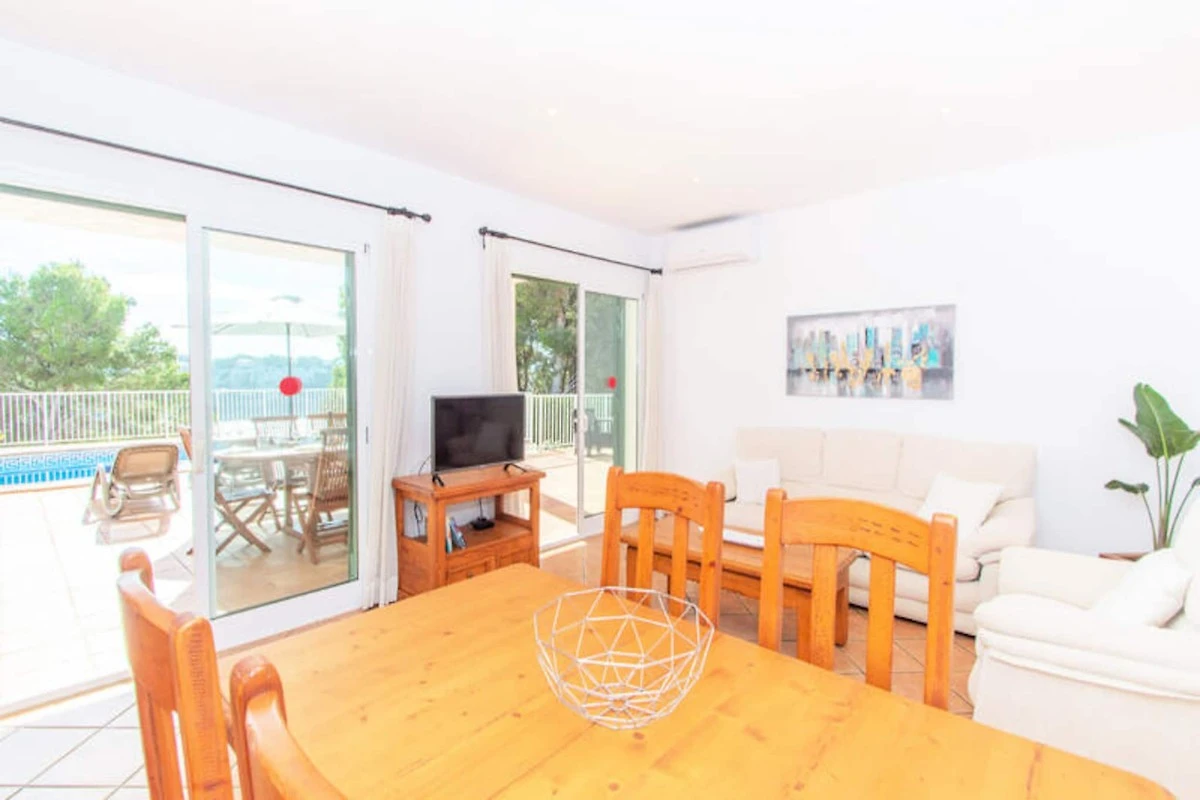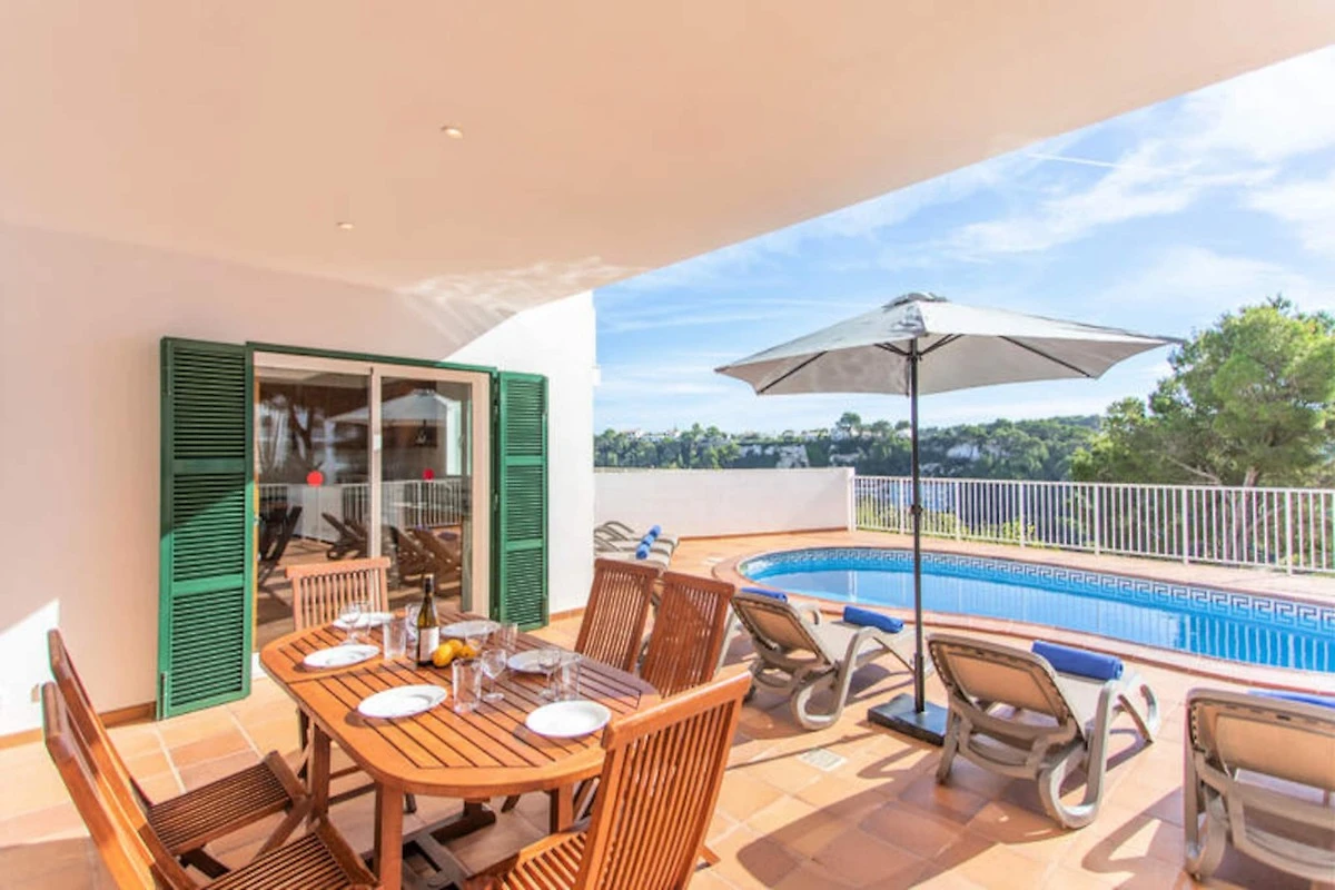 Diese geräumige Villa in Cala Galdana verfügt über 4 Schlafzimmer und bietet Platz für bis zu 7 Personen. Das 180 m² große Grundstück bietet eine komfortable Umgebung mit Meerblick, ideal für Familien. Die Villa verfügt über einen privaten Pool, Klimaanlage, Heizung und einen Fernseher mit Satellitenfernsehen in mehreren Sprachen (Spanisch, Englisch, Deutsch, Französisch). Es ist rauch- und haustierfrei und sorgt so für eine ruhige Atmosphäre für alle Gäste.