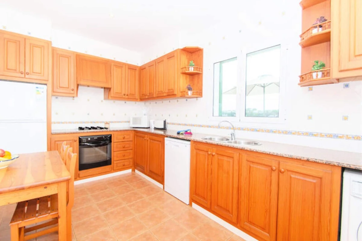 Für zusätzlichen Komfort verfügt die Villa über eine voll ausgestattete separate Küche mit Kühlschrank, Mikrowelle, Backofen, Geschirrspüler, Kaffeemaschine und mehr. Der Waschraum verfügt über die wichtigsten Annehmlichkeiten und ein Balkon lädt zum Entspannen im Freien ein. Die große Terrasse, die Gartenmöbel und der Grill machen Essen und Unterhaltung im Freien zum Kinderspiel. Den Gästen stehen Parkplätze abseits der Straße zur Verfügung.