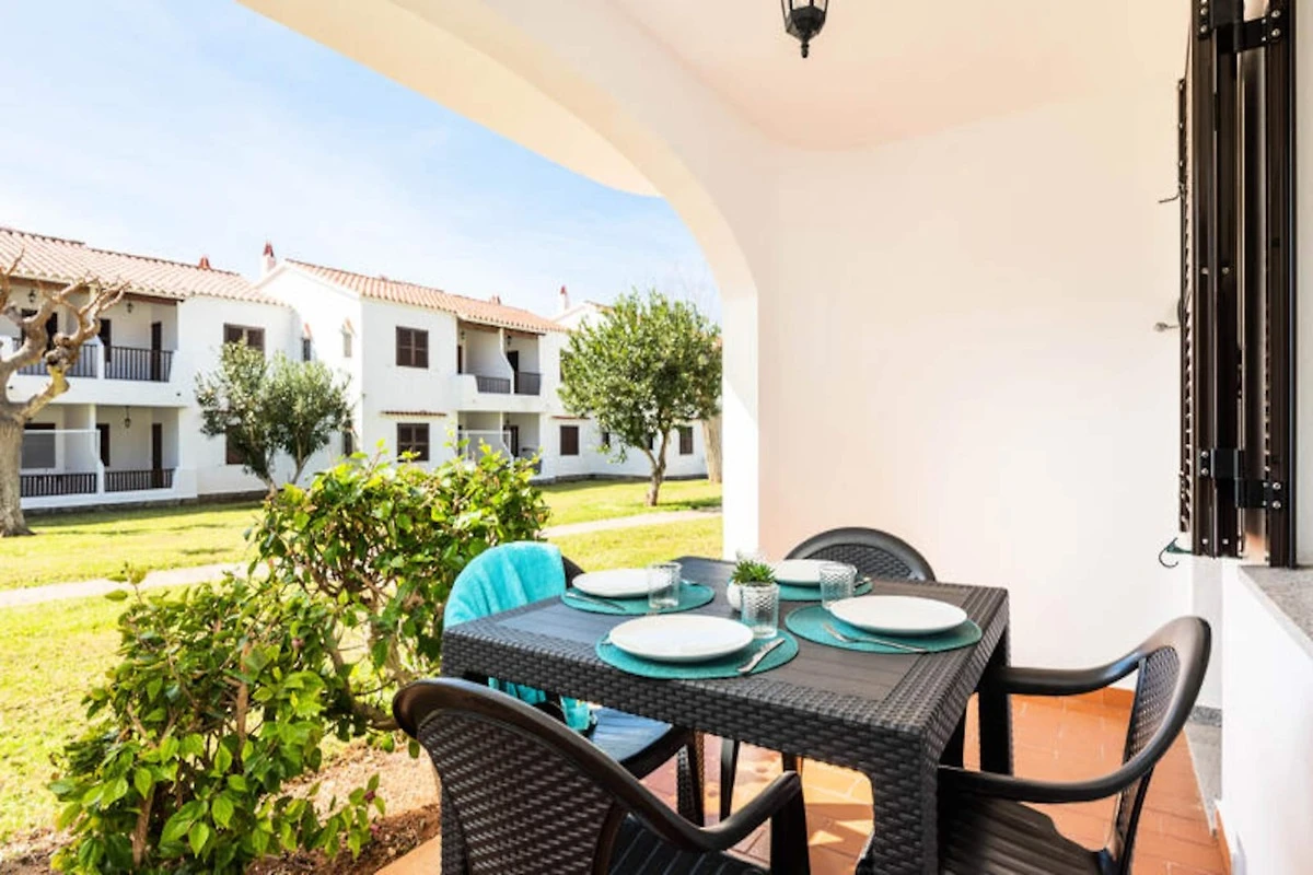 Ihr Ferienhaus in Son Bou bietet mit seinem charmanten Apartment mit 2 Schlafzimmern, das auf Stil und Komfort ausgelegt ist, den perfekten Rahmen für einen Familien- oder Paarurlaub. Es liegt in einem Resort, umgeben von lebhaften Gärten, die mit dem farbenfrohen roten Hibiskus der Insel geschmückt sind, und verspricht eine friedliche und dennoch lebendige Umgebung für einen unvergesslichen Urlaub.