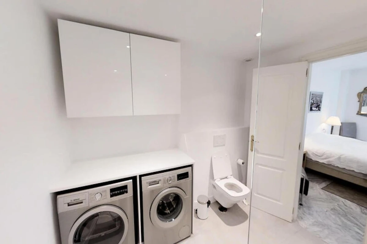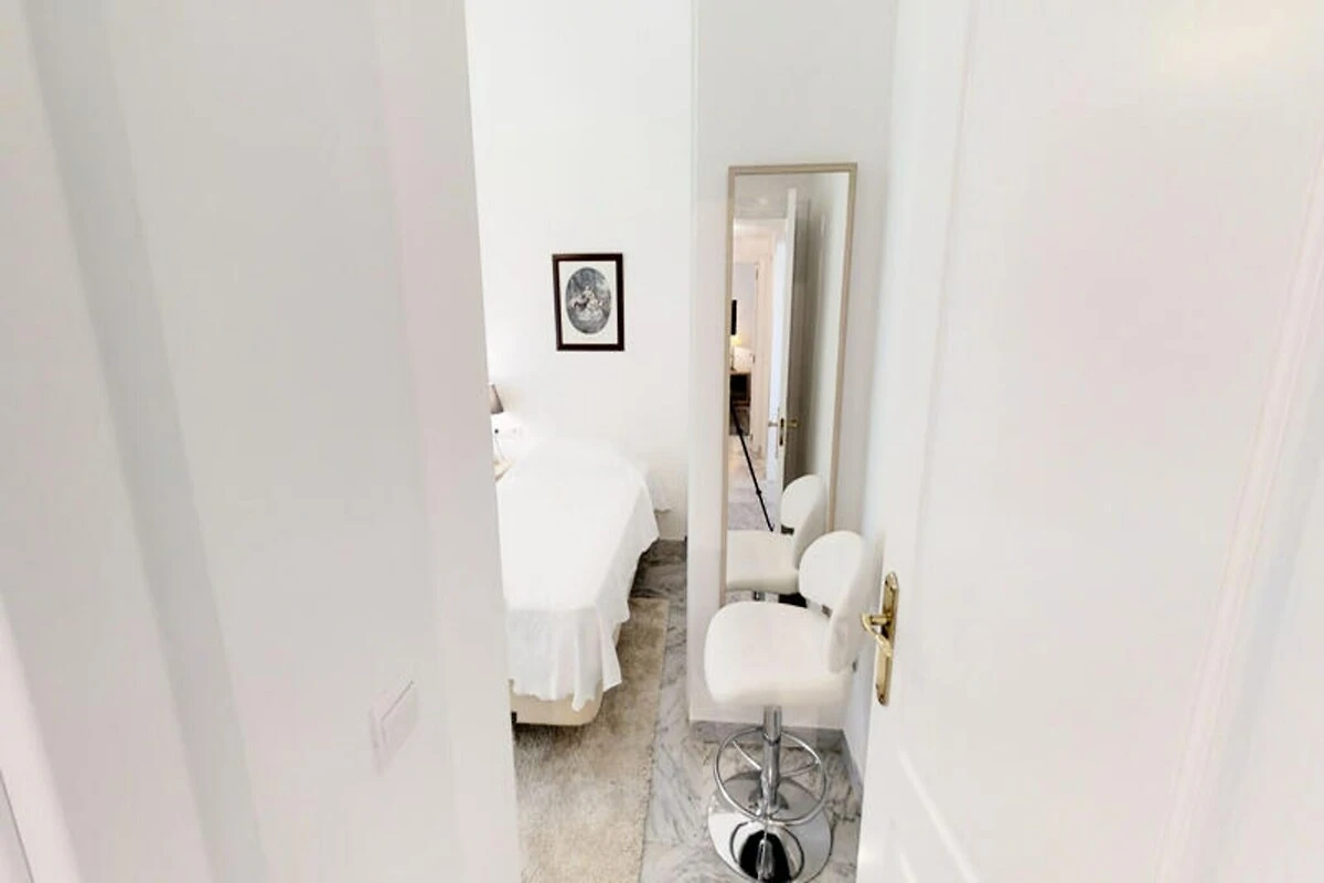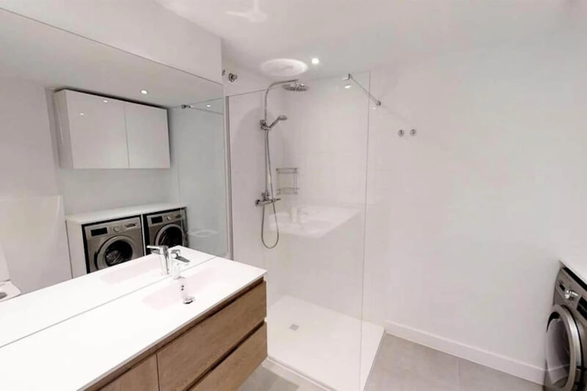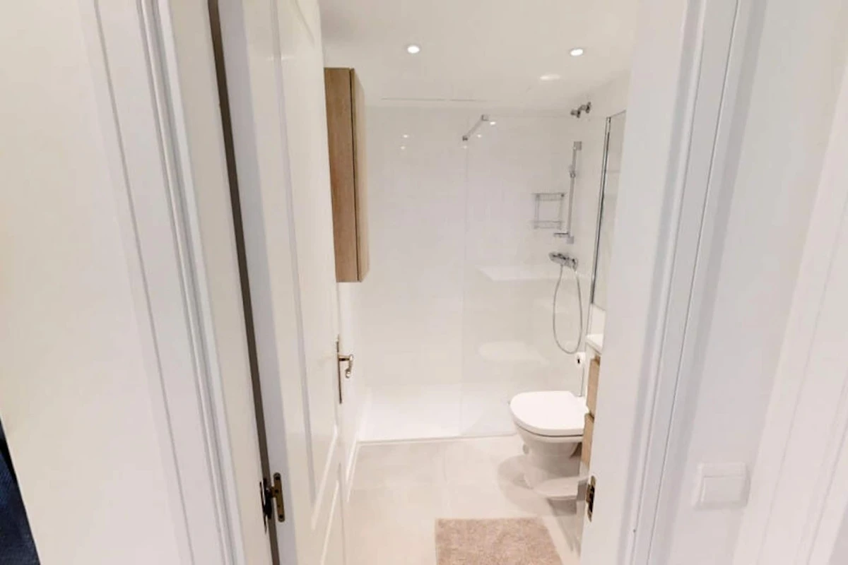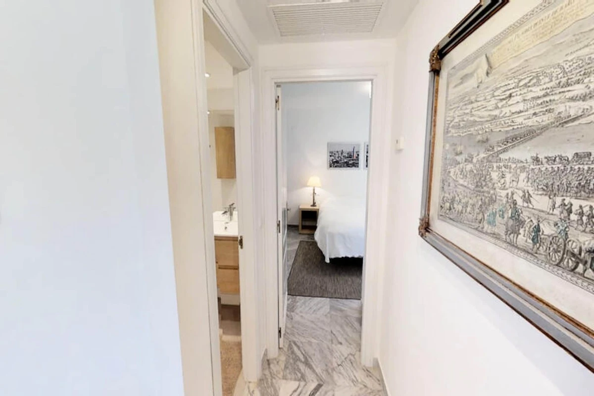 Die Wohnung verfügt über drei Schlafzimmer und zwei Badezimmer. Zwei der Schlafzimmer sind mit jeweils zwei Einzelbetten ausgestattet, während das Hauptschlafzimmer, das mehr Privatsphäre bietet, über ein eigenes Badezimmer verfügt. Das kürzlich renovierte Apartment verfügt über eine moderne Einrichtung, die das stilvolle und funktionale Design ergänzt.