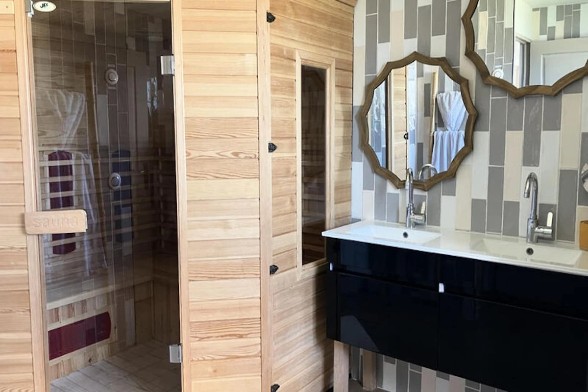 Spazieren Sie entlang der Wanderwege, die direkt vor dem Haus beginnen, und bewundern Sie die atemberaubende Aussicht auf das Meer und die Inseln. Für Ihre Momente der Entspannung stehen Ihnen ein Spa im Garten und eine Sauna zur Verfügung.