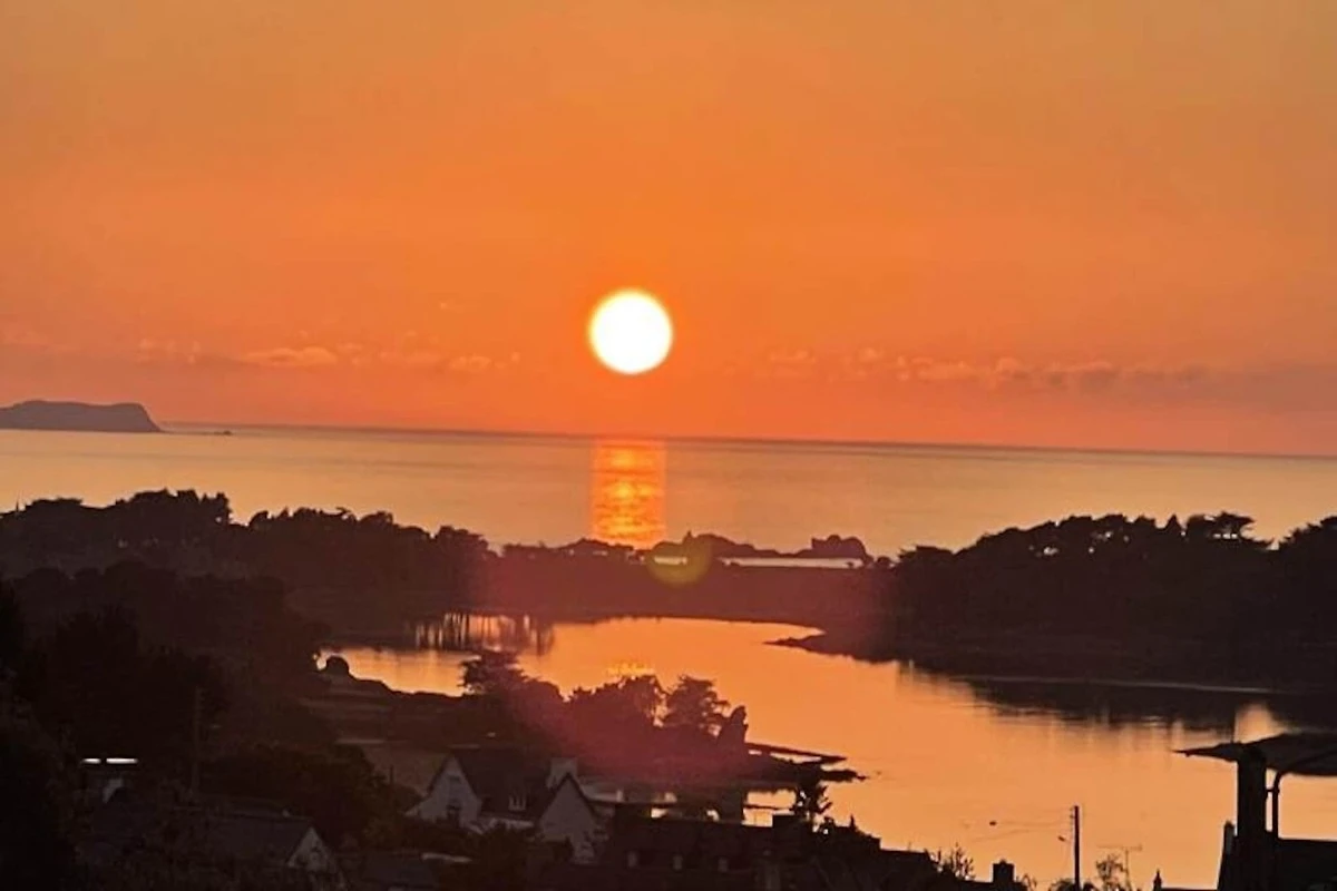 Rosa Granitküste, Vermietung einer außergewöhnlichen Villa in der Bretagne für 8 Personen mit einem allgegenwärtigen Panoramablick auf das Meer, der den ganzen Tag über das Auge fesselt und Sie abends bei Sonnenuntergang in Erstaunen versetzt. Dank der Allgegenwart der Erkerfenster hat man immer den Eindruck, auf der Gartenseite mit dem Meer oder der Natur in Kontakt zu sein.