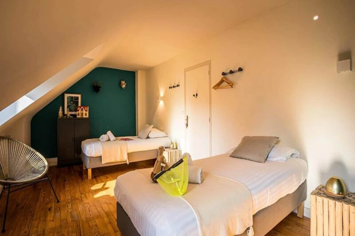- Schlafzimmer 8: 2 Einzelbetten 90 (1. Etage)