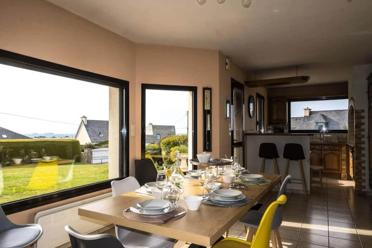 BUGUELES - Meerblick. Hübsches Haus zur Miete für einen Urlaub in der Bretagne. Dieses Haus verfügt über den nötigen Komfort und die nötige Ausstattung für einen Urlaub mit Familie oder Freunden und bietet dank seiner 4 Schlafzimmer Platz für bis zu 8 Reisende.