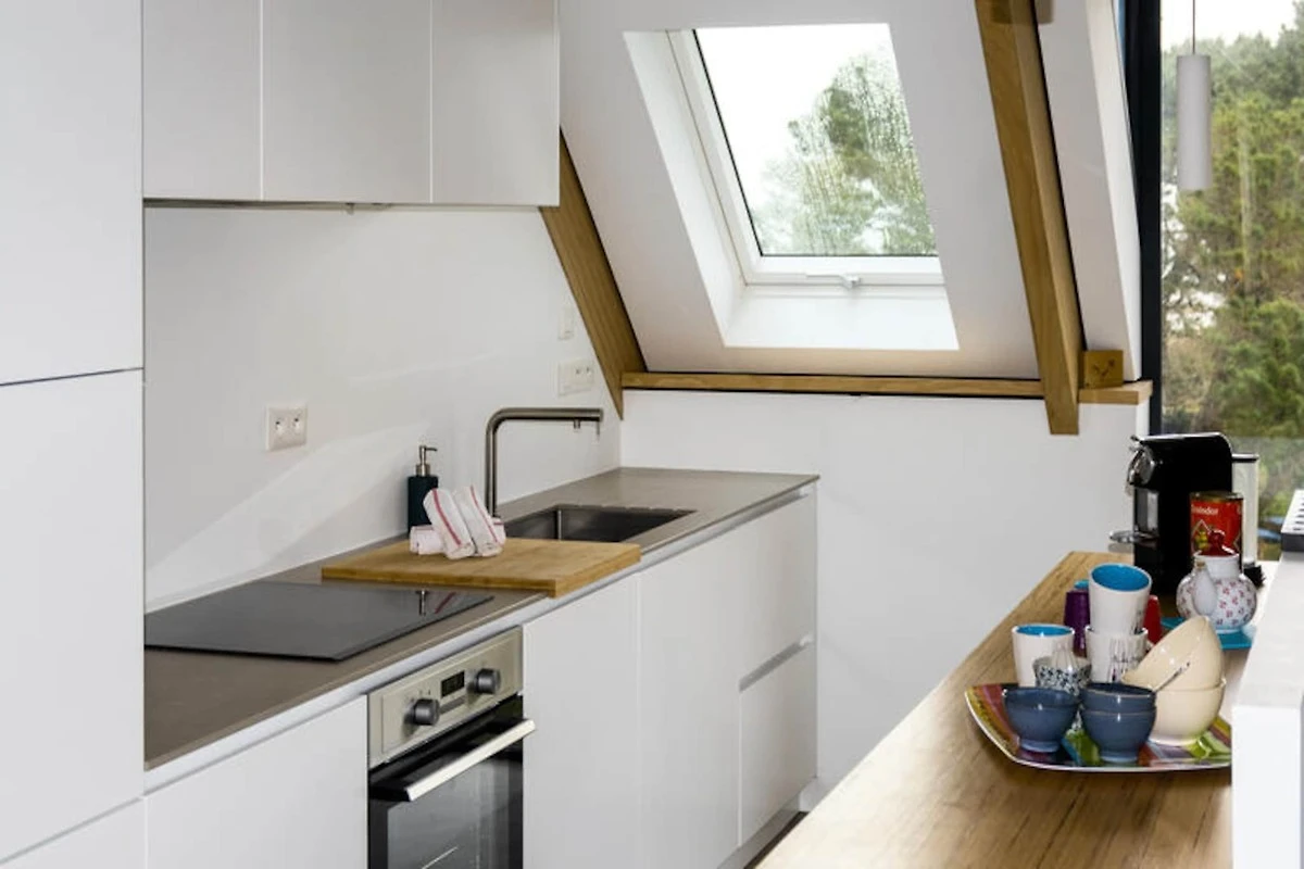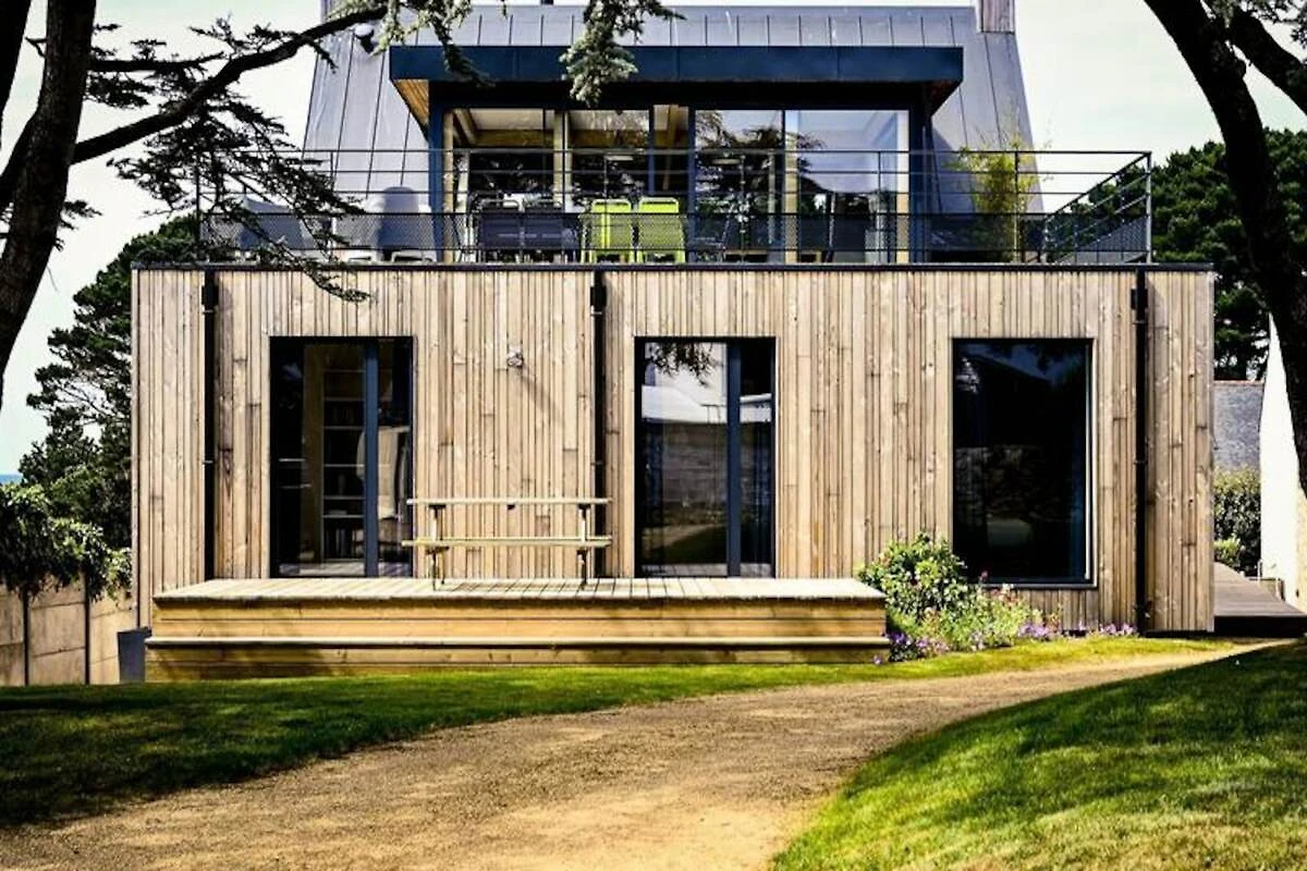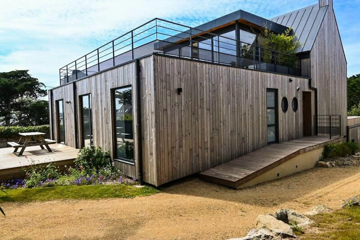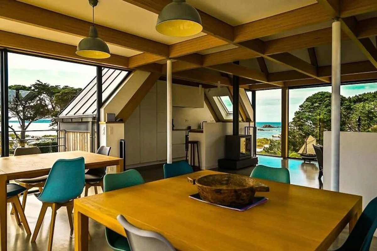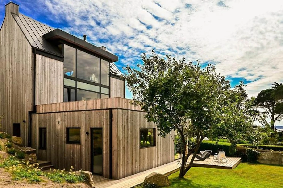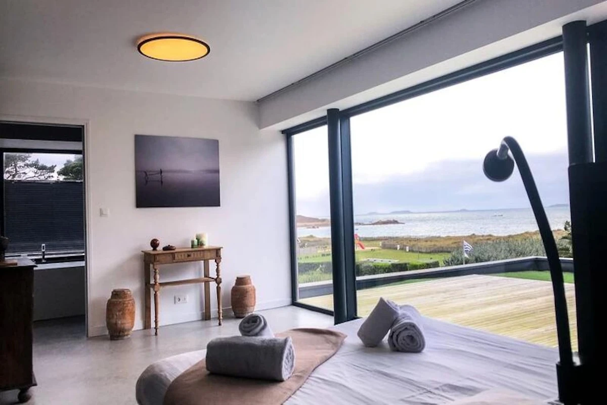 PORT BLANC, Vermietung einer außergewöhnlichen modernen Villa für 8/10 Personen, nur einen Steinwurf vom Strand Dunes entfernt und mit herrlichem Blick auf das Meer.