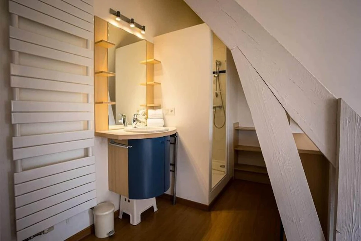 - 1 Badezimmer mit Toilette auf dem Treppenabsatz im 1. Stock