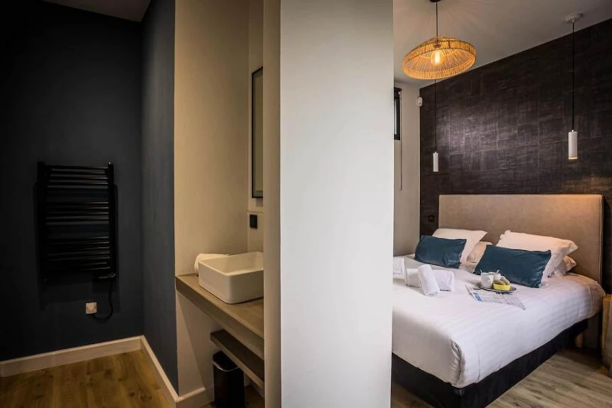 - Schlafzimmer Nr. 6: 1 160 cm breites Bett mit eigenem Bad (Boden)