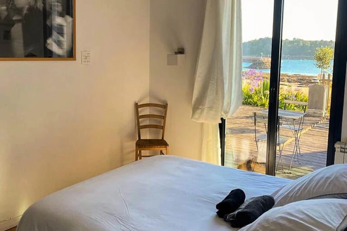 - Schlafzimmer 2 (Erdgeschoss): 1 160 cm breites Bett. Meerblick.