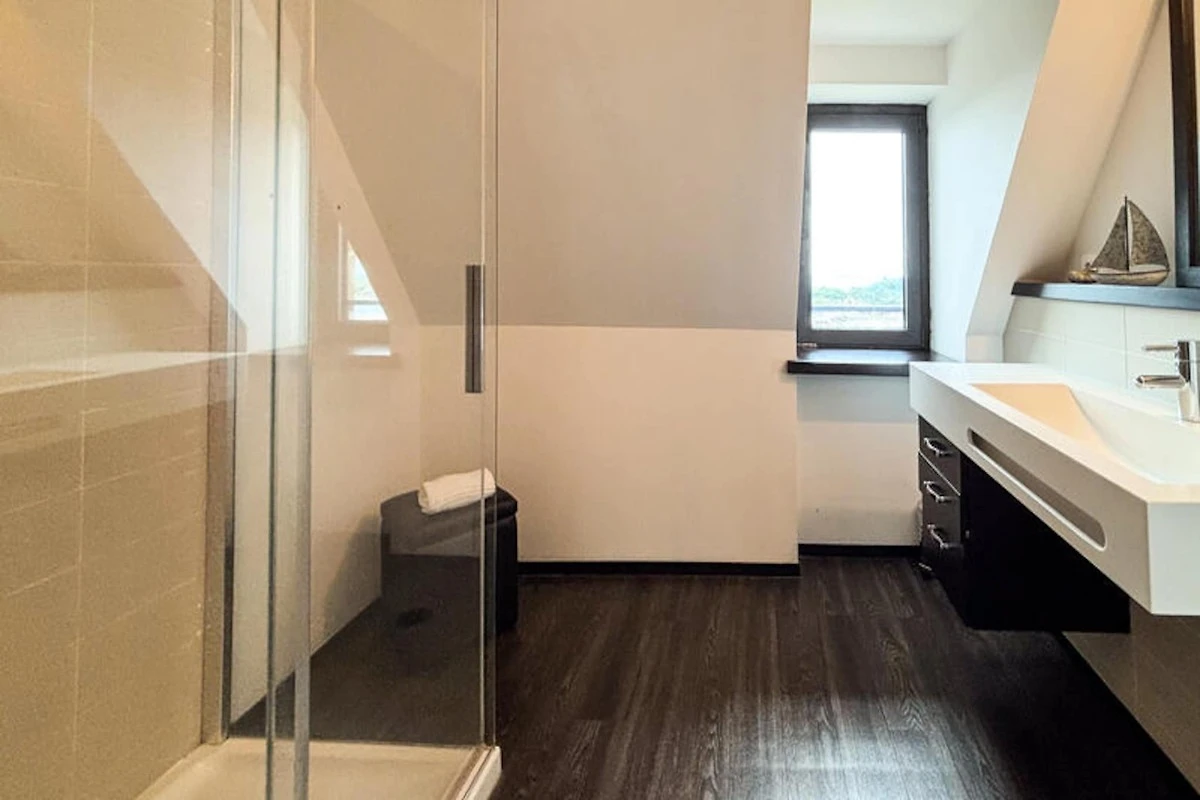 - Schlafzimmer 1: 1 Doppelbett (160 cm) mit Duschbad und WC (Erdgeschoss).