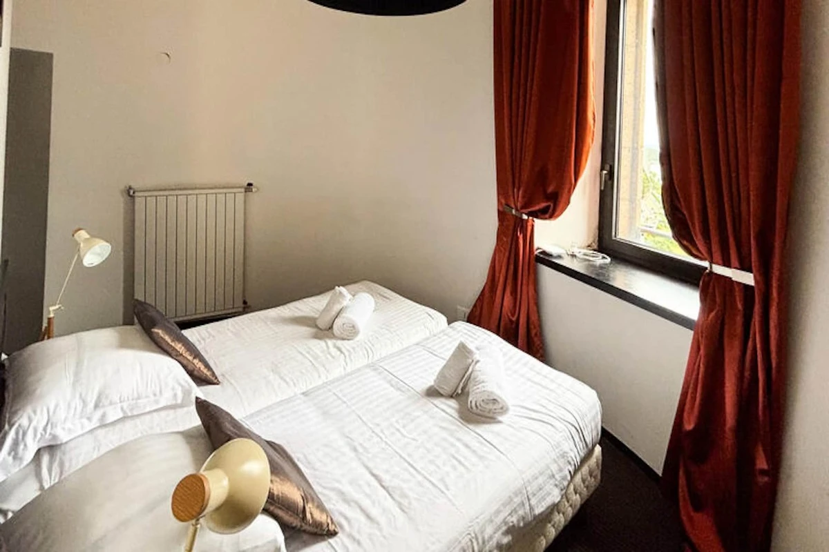 - Schlafzimmer 7: 2 Einzelbetten, gemeinsames Bad und WC mit Schlafzimmer 6 (2. Etage).