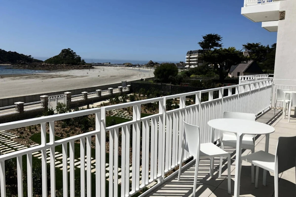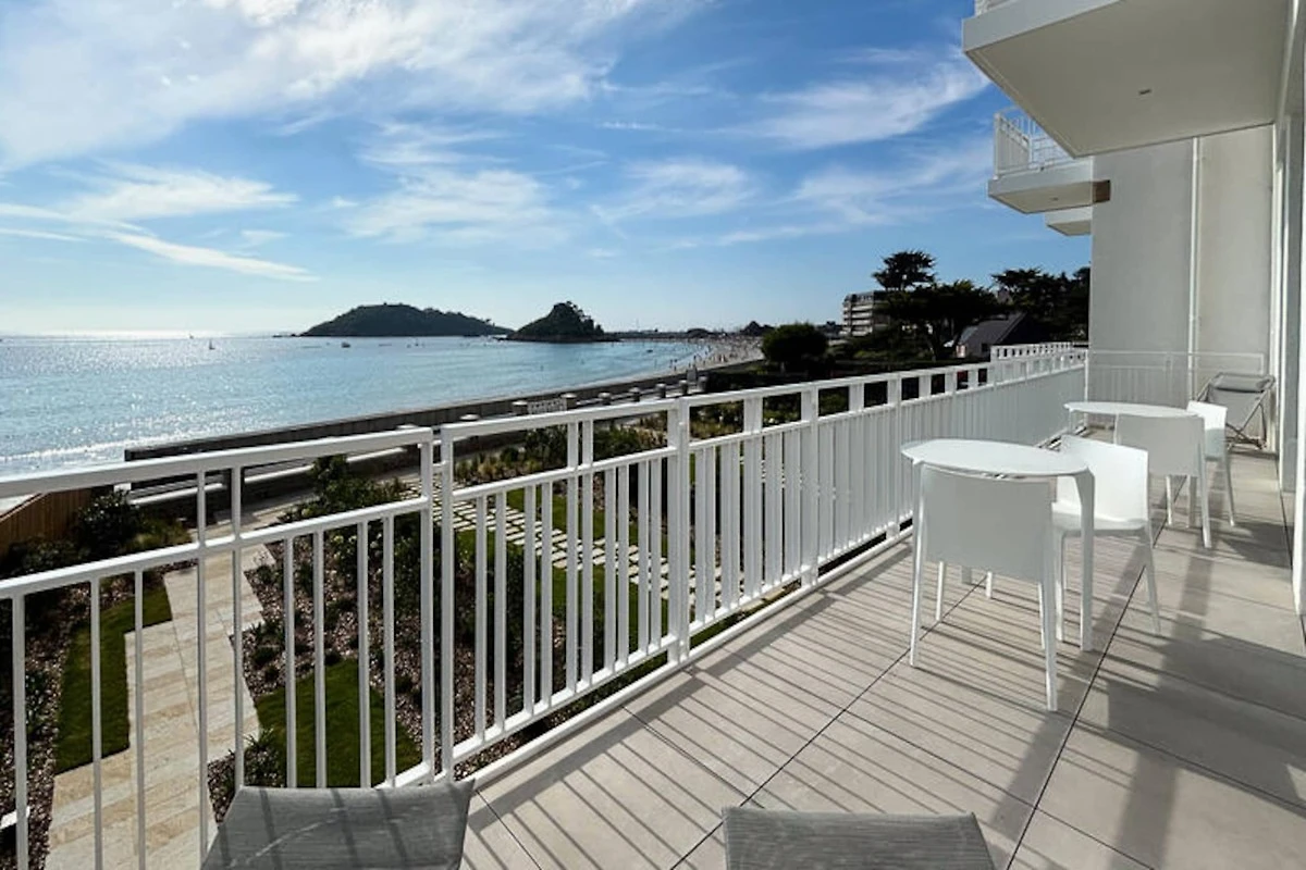 Willkommen in „Rouzic“, unserer prächtigen 4-Zimmer-Wohnung im Centre Philippe-Joppé, entworfen vom berühmten Architekturbüro Wilmotte & Associés. Mit direktem Zugang zum Strand von Tresmeur und atemberaubendem Meerblick ist unsere Unterkunft der ideale Ort für einen unvergesslichen Urlaub am Meer.