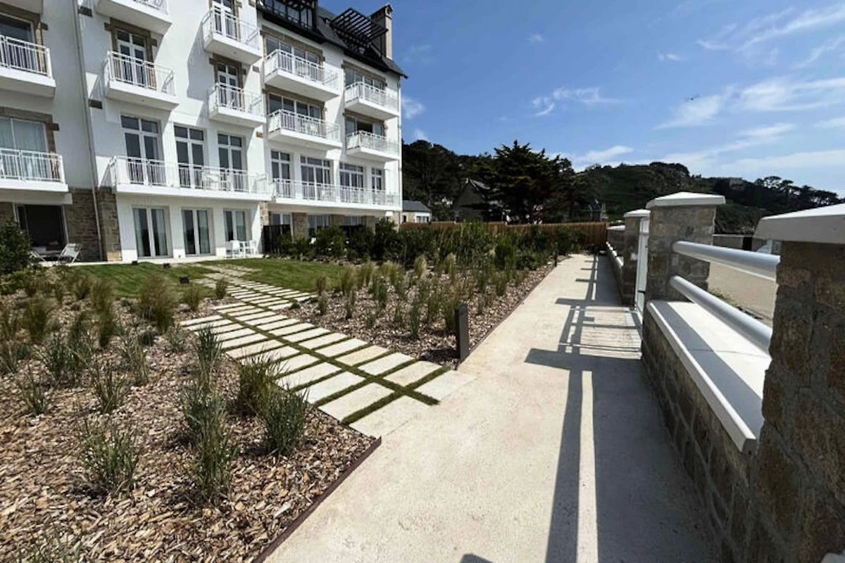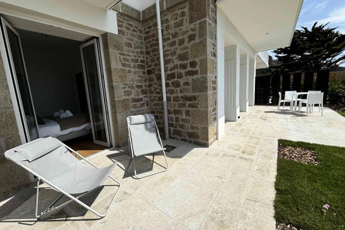Willkommen in „Milliau“, unserer prächtigen 2-Zimmer-Wohnung im Erdgeschoss des Centre Philippe-Joppé, entworfen vom berühmten Architekturbüro Wilmotte & Associés. Mit direktem Zugang zum Strand von Tresmeur und atemberaubendem Meerblick ist unsere Unterkunft der ideale Ort für einen unvergesslichen Urlaub am Meer.