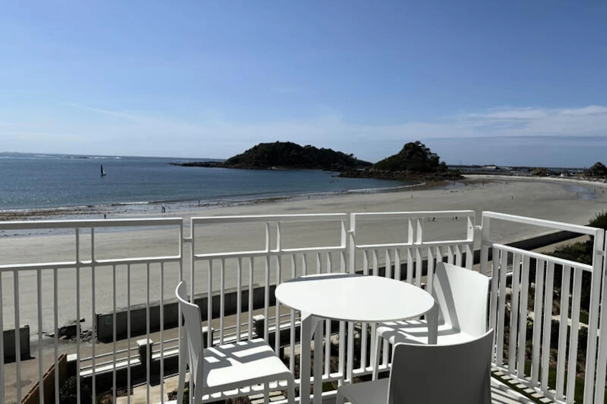 Entdecken Sie den Charme der Résidence Philippe Joppé, einem Ort, an dem Komfort und Gelassenheit aufeinander treffen. Unsere Residenz liegt in Trébeurden an der Côte de Granit Rose und bietet Ihnen ein geräumiges und elegantes Apartment von 70 m² mit dem Namen LE TOENNO. Ausgestattet mit einem großen Wohnzimmer, einer voll ausgestatteten Küche mit Nespresso-Kaffeemaschine, einem komfortablen Wohnzimmer und einer Terrasse mit Blick auf das Meer genießen Sie einen atemberaubenden Blick auf den Strand von Tresmeur und die Sonnenuntergänge. spektakulärer Sonnenschein auf Milliau Island. Mit einem ganzjährig beheizten Schwimmbad und modernen Einrichtungen erleben Sie einen unvergesslichen Aufenthalt.