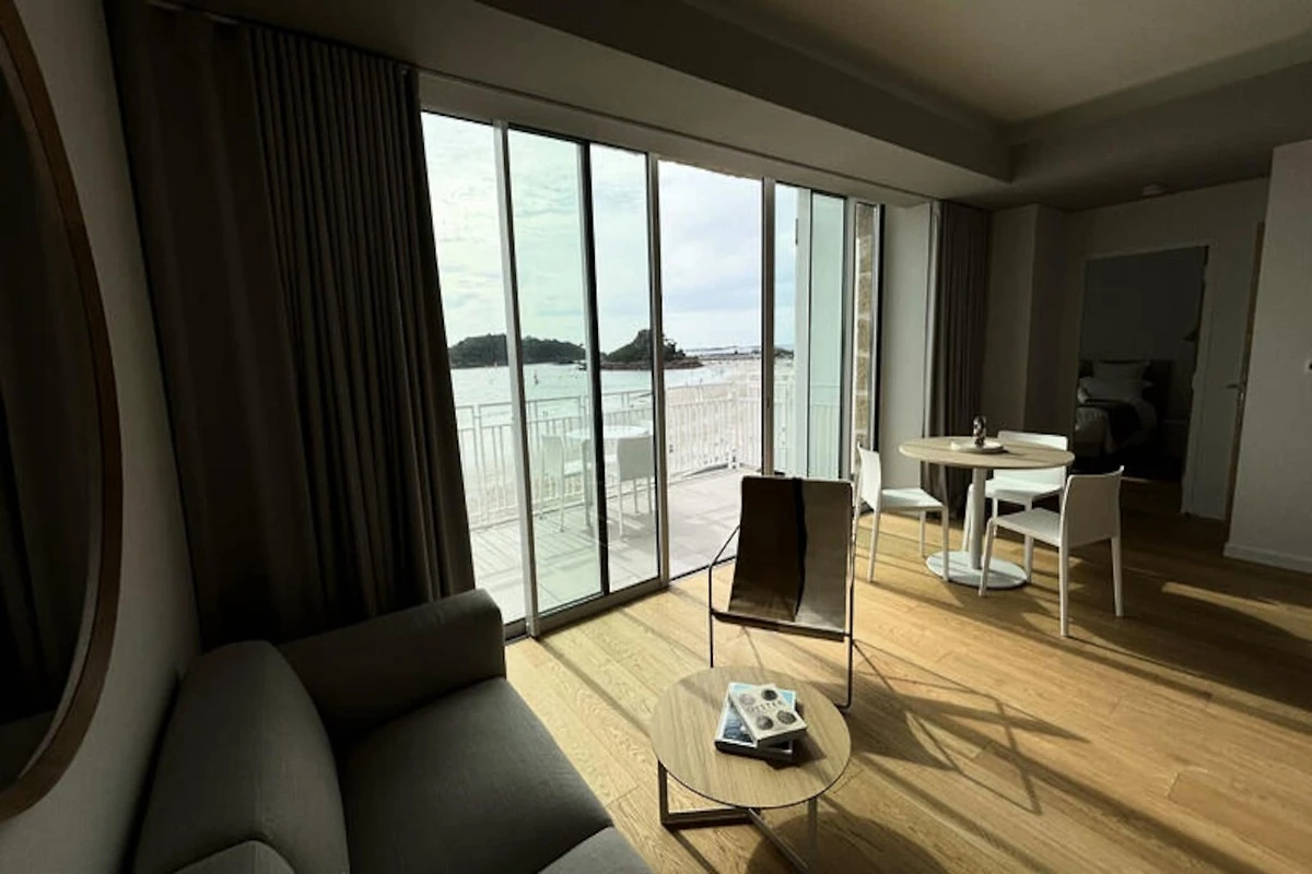 Willkommen in „Beg Leguer“, unserer prächtigen 2-Zimmer-Wohnung im Centre Philippe-Joppé, entworfen vom berühmten Architekturbüro Wilmotte & Associés. Mit direktem Zugang zum Strand von Tresmeur und atemberaubendem Meerblick ist unsere Unterkunft der ideale Ort für einen unvergesslichen Urlaub am Meer.