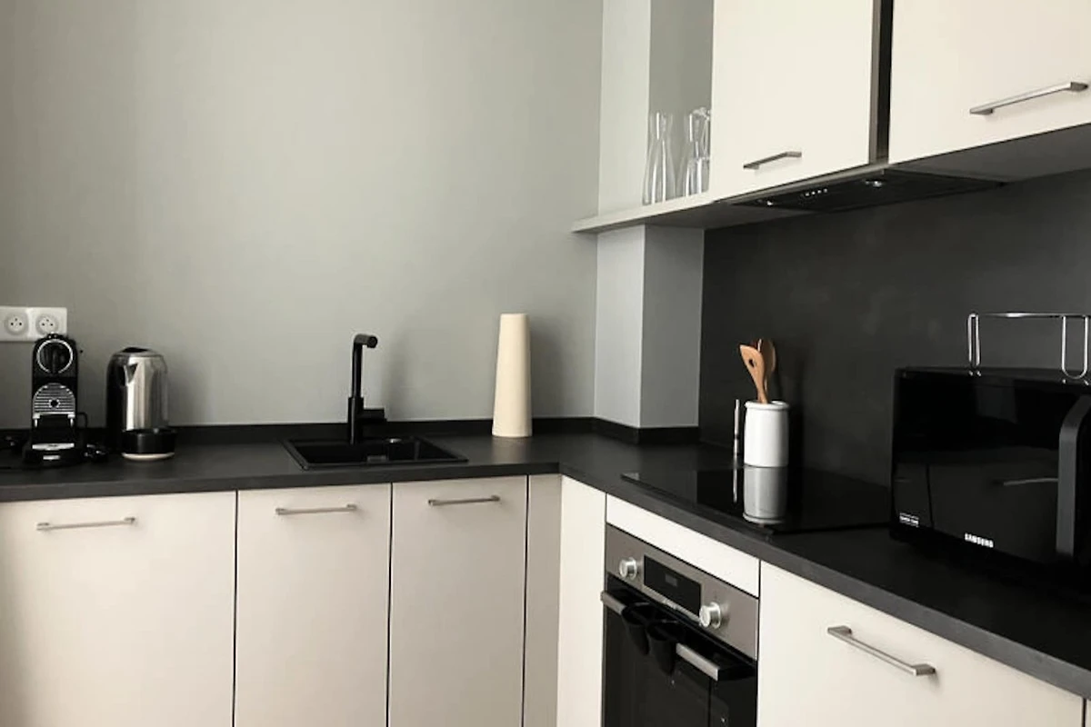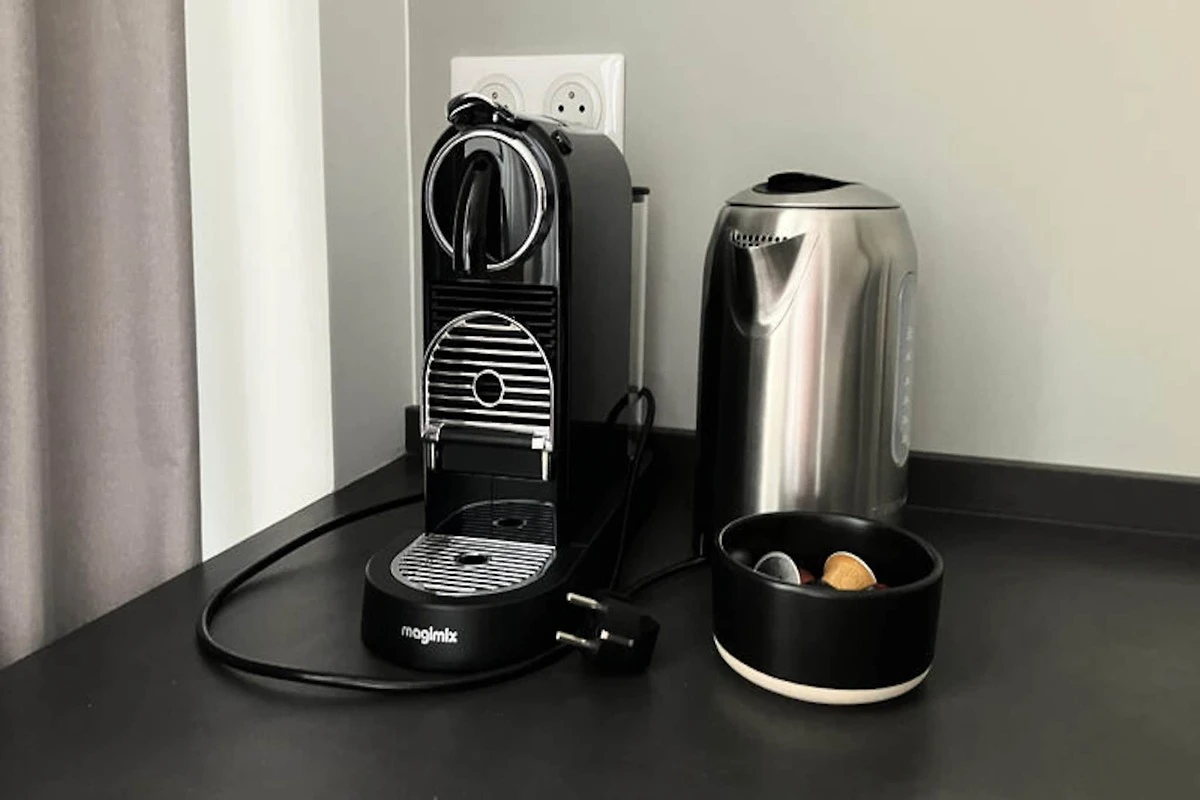 Für Ihren Komfort finden Sie in der Wohnung einen Waschtrockner, eine Nespresso-Kaffeemaschine und alles, was Sie für die Zubereitung Ihrer Mahlzeiten benötigen.