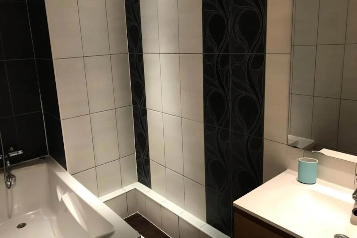 Das Apartment verfügt über eine voll ausgestattete Küche mit Cerankochfeld, Geschirrspüler, Kühlschrank, Mikrowelle und verschiedenen Küchenutensilien, die sich perfekt für die Zubereitung von Mahlzeiten während Ihres Aufenthalts eignen. Das Badezimmer verfügt über eine Badewanne, einen elektrischen Handtuchtrockner und einen großen Spiegel, während ein separates WC für zusätzlichen Komfort sorgt. Zu den weiteren Annehmlichkeiten gehören ein Waschraum mit Waschmaschine, Babyausstattung (auf Anfrage) und die Möglichkeit, Bett- und Badezimmerwäsche zu mieten.