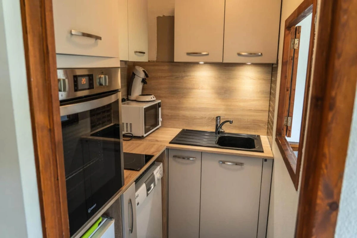 Das Apartment verfügt über eine voll ausgestattete Küche mit Geschirrspüler, Backofen und Spezialgeräten wie einem Fondue- und Raclettegerät für die einfache Zubereitung von Mahlzeiten – perfekt für gemütliche Abende mit der Familie oder mit Freunden. Der geräumige Wohnbereich lädt zum Entspannen ein und sorgt mit einem bequemen Sofa und einem Kamin für zusätzliche Atmosphäre. Das kürzlich renovierte Badezimmer verfügt über eine Badewanne für einen erholsamen Rückzugsort nach Outdoor-Aktivitäten. Zur sicheren Aufbewahrung der Skiausrüstung steht ein privater Skiraum zur Verfügung, der denjenigen, die gerne auf die Piste gehen, ein stressfreies Erlebnis garantiert.