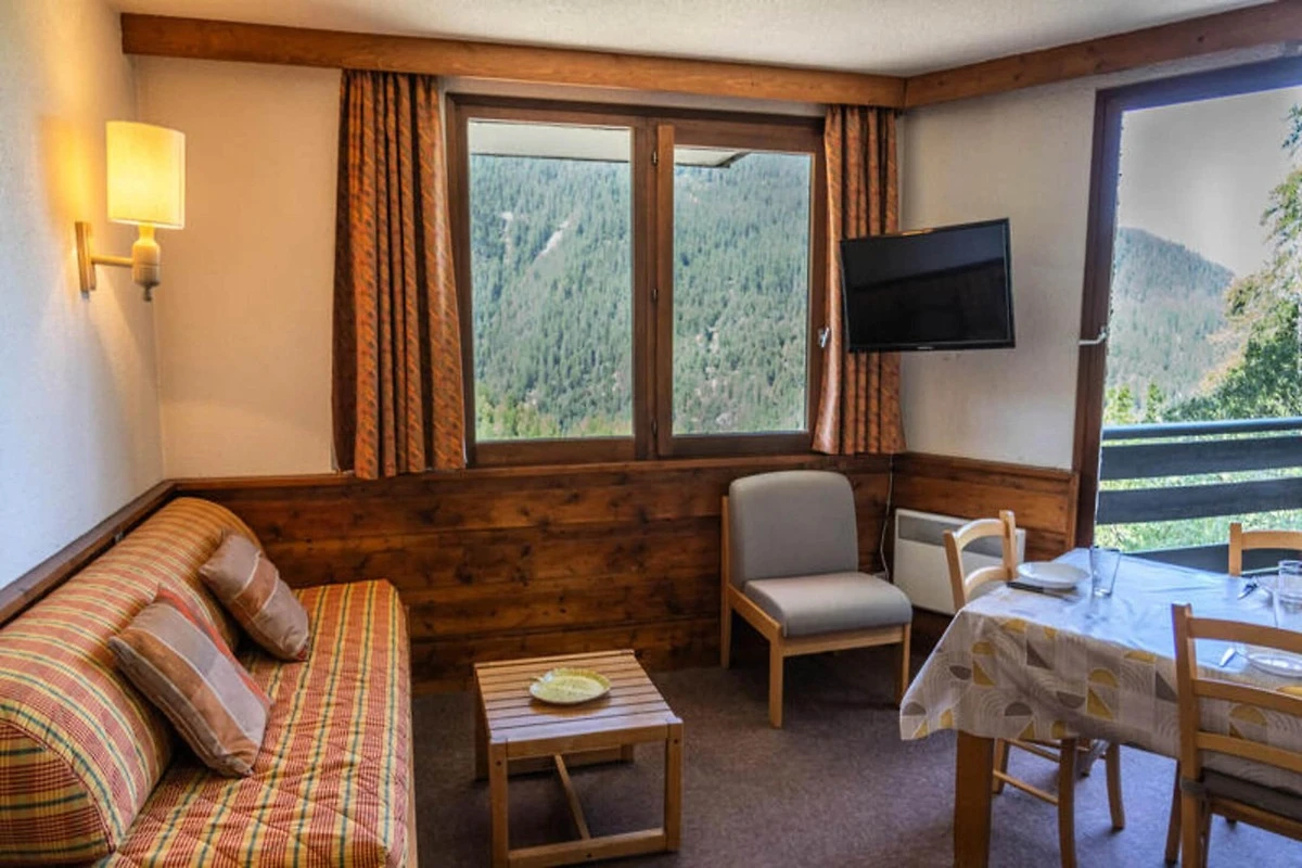 Dieses charmante, 39 m² große Apartment liegt im Herzen des historischen Ferienortes Les Orres 1650 und bietet einen komfortablen Aufenthalt für bis zu 5 Gäste. Es verfügt über ein Schlafzimmer mit zwei Einzelbetten, ein ausziehbares Schlafsofa für zwei Personen und eine Einzelsitzbank im Wohnbereich. Zum Wohnraum gehört auch eine voll ausgestattete Küche mit Geschirrspüler, Mikrowellengrill und Küchenutensilien, die sich perfekt für die Zubereitung von Mahlzeiten mit Familie oder Freunden eignet. Ein Balkon mit Nord-West-Aussicht auf die Berge trägt zusätzlich zur Attraktivität der Wohnung bei. Zur Aufbewahrung Ihrer Ausrüstung steht Ihnen ein privater Skiraum zur Verfügung.