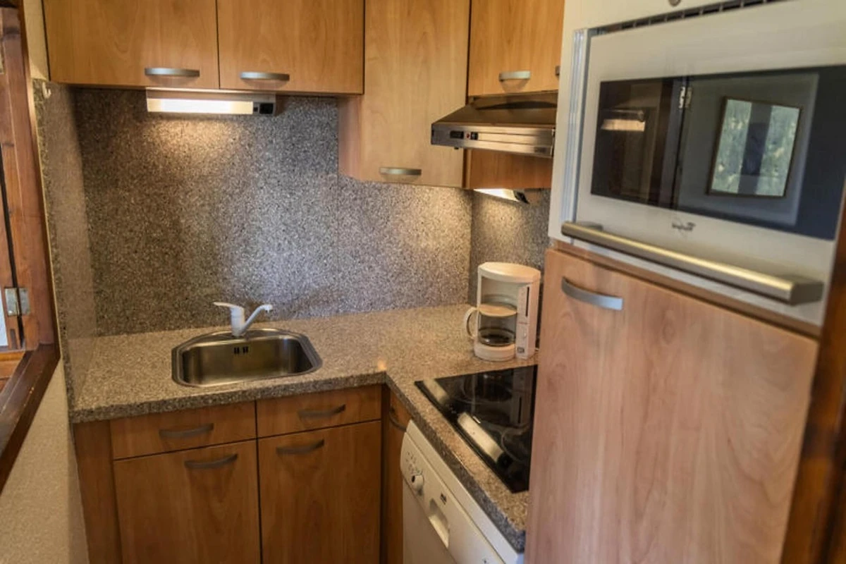 Das Badezimmer des Apartments verfügt über eine Badewanne und bietet einen entspannenden Raum zum Entspannen nach einem Tag voller Aktivitäten. Die Residenz ist auf Komfort ausgelegt und verfügt über praktische Annehmlichkeiten wie Heizung und einfachen Zugang zu einer Vielzahl von Freizeitmöglichkeiten. Egal, ob Sie am Kamin entspannen, Billard spielen oder das Solarium genießen möchten, dieses Anwesen bietet eine perfekte Mischung aus Komfort, Entspannung und Abenteuer in der wunderschönen Region Hautes-Alpes.
