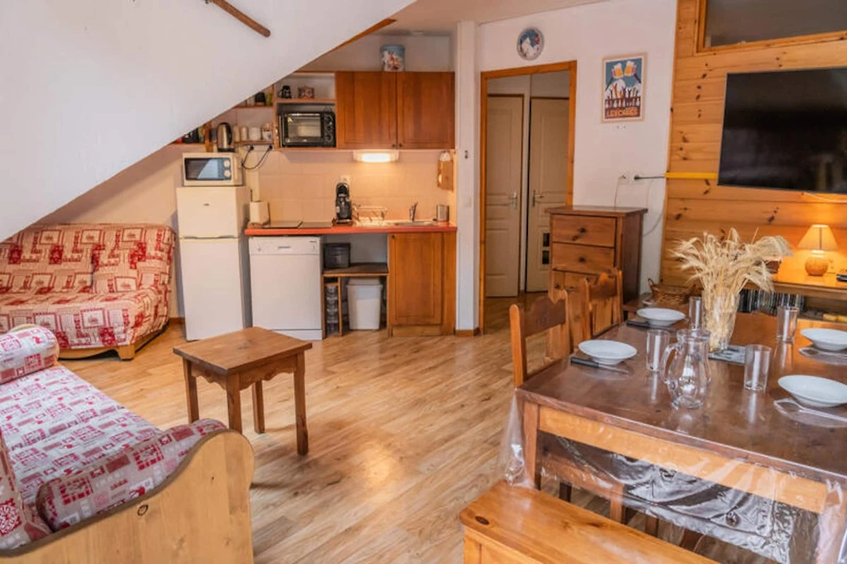 Das Apartment ist komplett mit modernen Annehmlichkeiten ausgestattet, darunter eine Küche mit Geschirrspüler, Backofen und verschiedenen Kaffeemaschinen wie Tassimo, Filter und italienischer Kaffeemaschine. Die Küche verfügt außerdem über ein Raclettegerät, perfekt für den Genuss traditioneller Alpengerichte. Für zusätzlichen Komfort verfügt das Apartment über Fahrradhaken auf dem Balkon und einen privaten Skiraum im Erdgeschoss der Residenz, der sich ideal zur Aufbewahrung Ihrer Ausrüstung eignet. Für Komfort und Privatsphäre sorgen die beiden Badezimmer, eines davon mit Badewanne. Zusätzliche Funktionen wie Heizung, Stauraum und ein Fernseher in jedem Zimmer erhöhen die Funktionalität des Apartments und machen es zu einem idealen Ausgangspunkt für Ihren Resortaufenthalt.