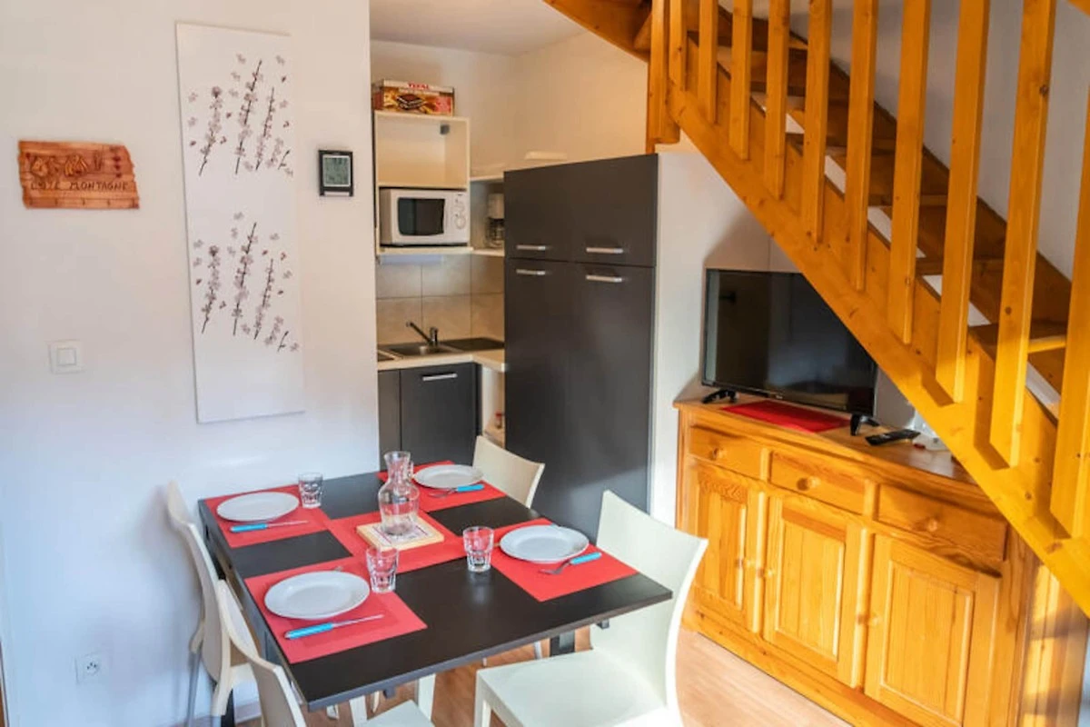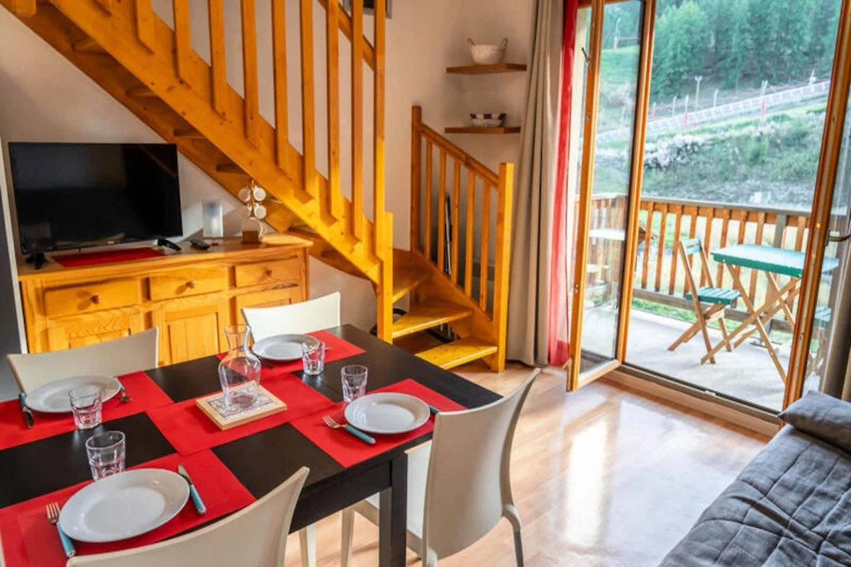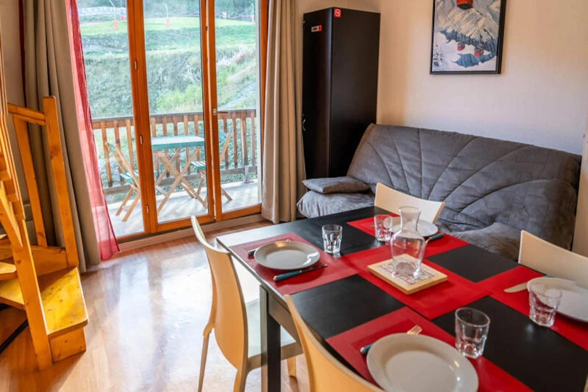 Es handelt sich um eine familienfreundliche Residenz am Fuße der Pisten im Weiler Bois Méan auf einer Höhe von 1800 Metern. Die 40 m² große Maisonette ist ideal für bis zu 6 Personen und bietet einen komfortablen Wohnraum mit einem Schlafsofa im Wohnzimmer und einer voll ausgestatteten Küche (einschließlich Geschirrspüler, Mikrowellengrill, Kaffeemaschine, Wasserkocher, Toaster und Raclettegerät). Der Esstisch bietet Platz für bis zu 6 Gäste für Familienessen.