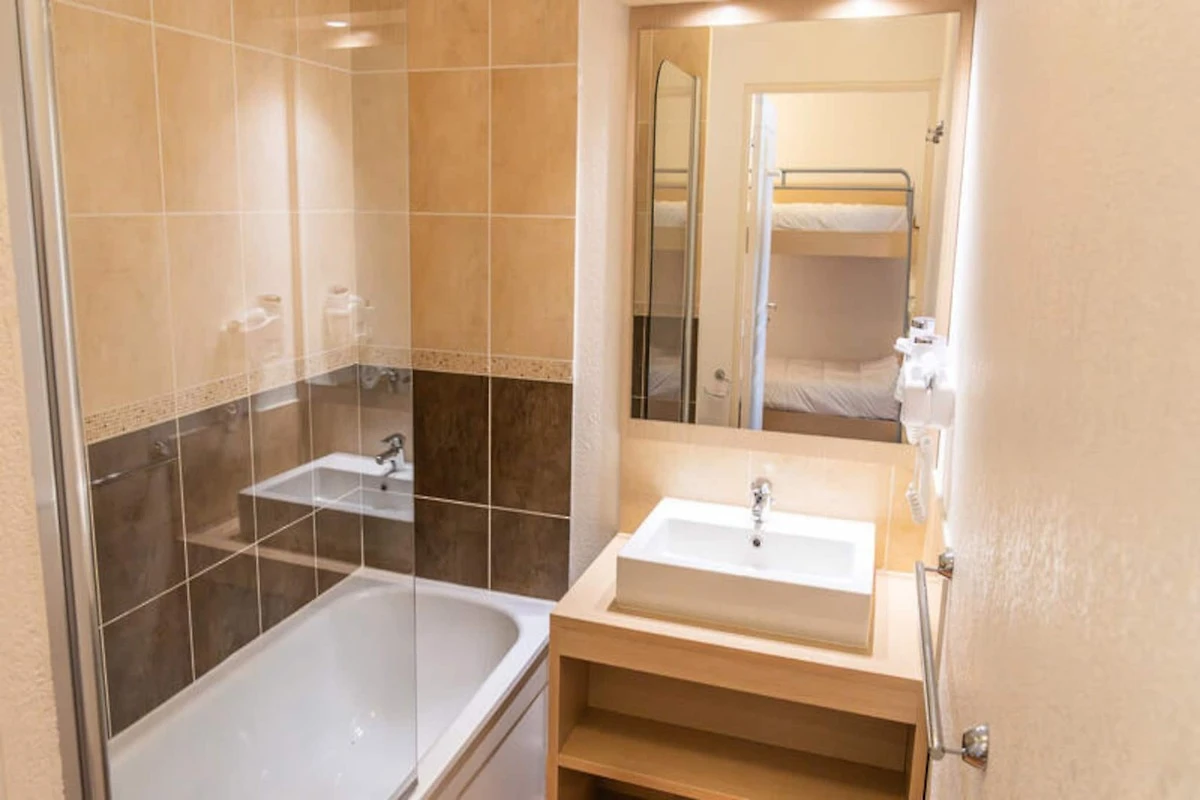 Bei diesem Anwesen handelt es sich neben seiner gemütlichen und familienfreundlichen Einrichtung um ein nach Westen ausgerichtetes, 23 m² großes Studio, das Platz für bis zu 4 Personen bietet. Die Wohnung verfügt über einen Schlafbereich mit zwei Etagenbetten und ein Wohnzimmer mit einem Schlafsofa, das in ein Doppelbett umgewandelt werden kann. Ein privater Balkon mit Gartenmöbeln bietet den Gästen die Möglichkeit, sich im Freien zu entspannen. Auch wenn Haustiere nicht ausdrücklich erwähnt werden, bietet das Apartment wesentliche Annehmlichkeiten für einen komfortablen Aufenthalt, darunter einen Fernseher, einen Geschirrspüler und ein Fondue-Set. Die Residenz verfügt außerdem über einen beheizten Innenpool mit Whirlpool, der auf derselben Etage wie das Apartment zugänglich ist. Der Pool ist jedoch nur saisonal verfügbar. Darüber hinaus steht den Gästen ein privater Skiraum zur Aufbewahrung ihrer Ausrüstung zur Verfügung. Kostenlose Aktivitäten sind nicht angegeben, aber die Lage bietet einen einfachen Zugang zu den Pisten und ist somit ideal für ein Ski-in/Ski-out-Erlebnis.