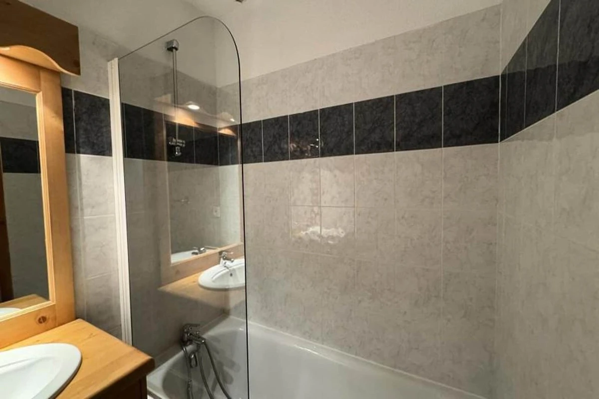 Das Apartment verfügt über eine voll ausgestattete Küche mit wichtigen Geräten wie Geschirrspüler, Toaster, Wasserkocher und Kaffeemaschine, ideal für die Zubereitung von Mahlzeiten während Ihres Aufenthalts. Das Badezimmer ist mit einer Badewanne ausgestattet und bietet einen entspannenden Raum zum Entspannen nach einem Tag voller Aktivitäten. Die Schlafzimmerkonfiguration umfasst ein Doppelbett und zwei Einzelbetten und gewährleistet so Flexibilität bei der Schlafanordnung für Familien oder Gruppen. Ganz gleich, ob Sie die nahegelegenen Pisten genießen oder im gemütlichen Innenbereich entspannen, dieses Anwesen ist auf Komfort und Bequemlichkeit ausgelegt.