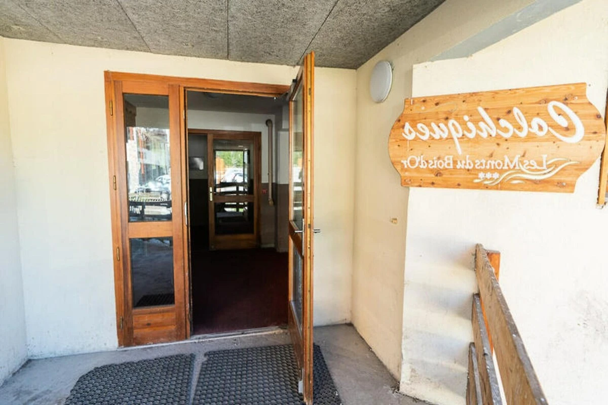 Das Anwesen bietet neben seiner erstklassigen Lage eine Vielzahl komfortabler Unterkünfte für 4 bis 10 Personen. Die Einheiten sind sorgfältig mit Berg-inspiriertem Dekor oder modernem Design eingerichtet und verfügen über Balkone oder Terrassen, um die Aussicht auf die Umgebung zu genießen. Die Apartments verfügen über geräumige Wohnbereiche, oft mit einem ausziehbaren 2-Sitzer-Schlafsofa und einem Fernseher zum Entspannen. Gäste haben Zugang zu einer privaten Skibox, die einen einfachen Ski-in- und Ski-out-Zugang gewährleistet. Die Unterkunft bietet auch praktische Mietmöglichkeiten und verfügt über einen beheizten Außenpool (saisonale Verfügbarkeit) und Saunen, die den Gästen hervorragende Entspannungsmöglichkeiten bieten.
