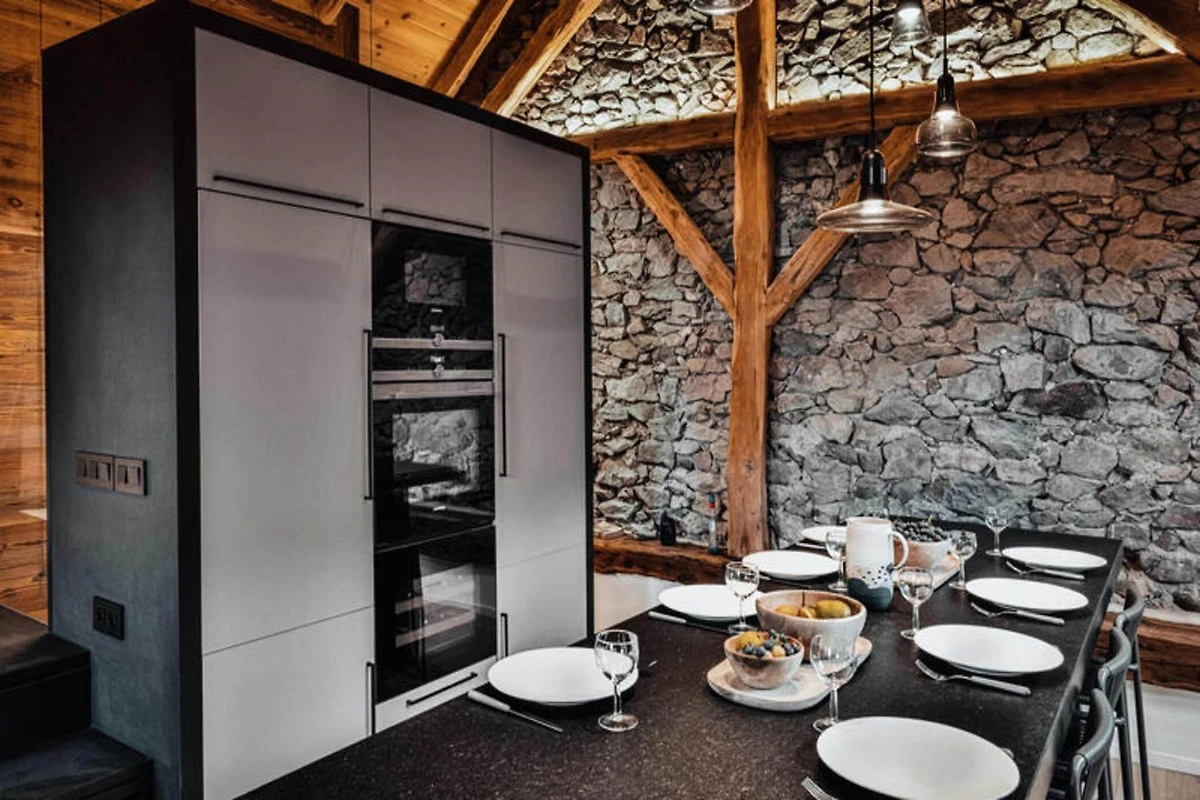 Das Apartment ist mit modernen Annehmlichkeiten ausgestattet und verfügt über eine voll ausgestattete Küche mit allem, was Sie für die Zubereitung von Mahlzeiten nach einem erlebnisreichen Tag benötigen. Gäste profitieren von Premium-Services wie der Bereitstellung von Bettwäsche bei der Ankunft, der Endreinigung und kostenlosen Toilettenartikeln. Der warme und einladende Wohnbereich mit Kamin schafft die perfekte Atmosphäre zum Entspannen und Genießen eines unvergesslichen Alpenurlaubs.
