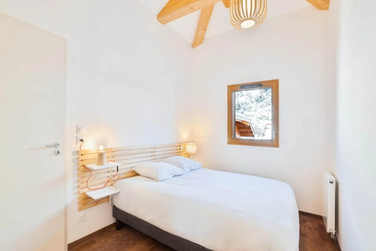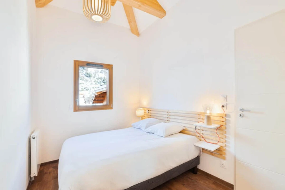 Dieses neue, moderne Apartment in Serre Chevalier – Le Monêtier-les-Bains bietet bequem Platz für bis zu sechs Gäste. Es verfügt über drei Doppelzimmer, darunter eines mit eigenem Bad und Dusche. Eine schöne Terrasse bietet Bergblick. Ein privater Parkplatz im Freien und ein Skiraum mit Schuhtrockner sind vorhanden.
