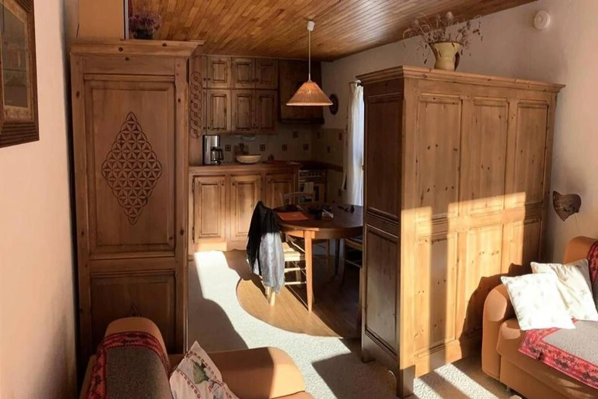 Das Apartment verfügt über eine Bergecke mit einem Etagenbett für eine Person und einem Doppelbett, eine offene Küche und ein Wohnzimmer mit einem Zweisitzer-Schlafsofa sowie ein Badezimmer mit Duschkabine und separatem WC. Es verfügt außerdem über einen Fernseher, einen Skiraum und eine Heizung.