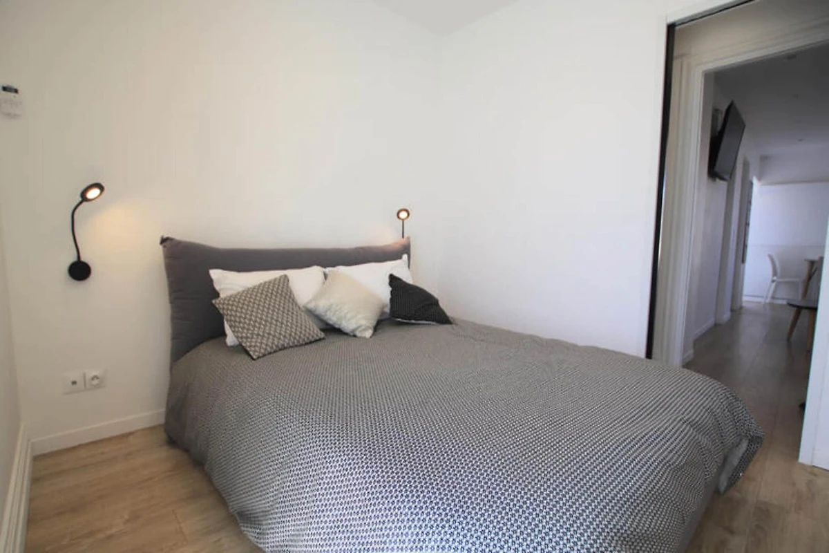 Beide Schlafzimmer sind mit Klimaanlage und elektrischen Rollläden ausgestattet und sorgen so für einen komfortablen und ruhigen Aufenthalt. Trotz der zentralen Lage bietet die Wohnung einen ruhigen Rückzugsort, alle notwendigen Einkaufsmöglichkeiten liegen verkehrsgünstig direkt unterhalb des Gebäudes.