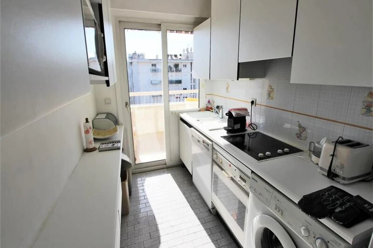 Die Küche ist separat und komplett ausgestattet und bietet alles Nötige für einen Selbstversorger-Aufenthalt. Zur Wohnung gehören außerdem ein separates italienisches Duschbad mit WC, ein Badezimmer mit Badewanne und ein zusätzliches separates WC. Mit Klimaanlage, einer Waschmaschine und anderen modernen Annehmlichkeiten bietet es einen komfortablen Ausgangspunkt für die Erkundung von Cannes.
